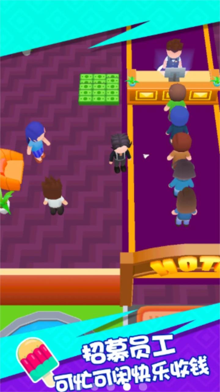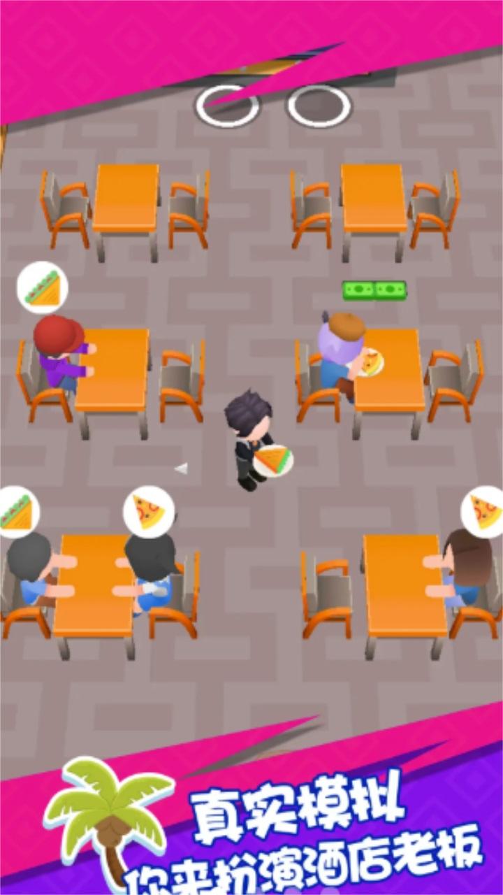 这是一款休闲易玩的模拟经营游戏。您将扮演一名帅气的老板,从服务员做起,亲自接待顾客,满足顾客需求,从而获得小费。随着资金增长,请升级房间和设施,为顾客提供更舒适而又全面的服务。
