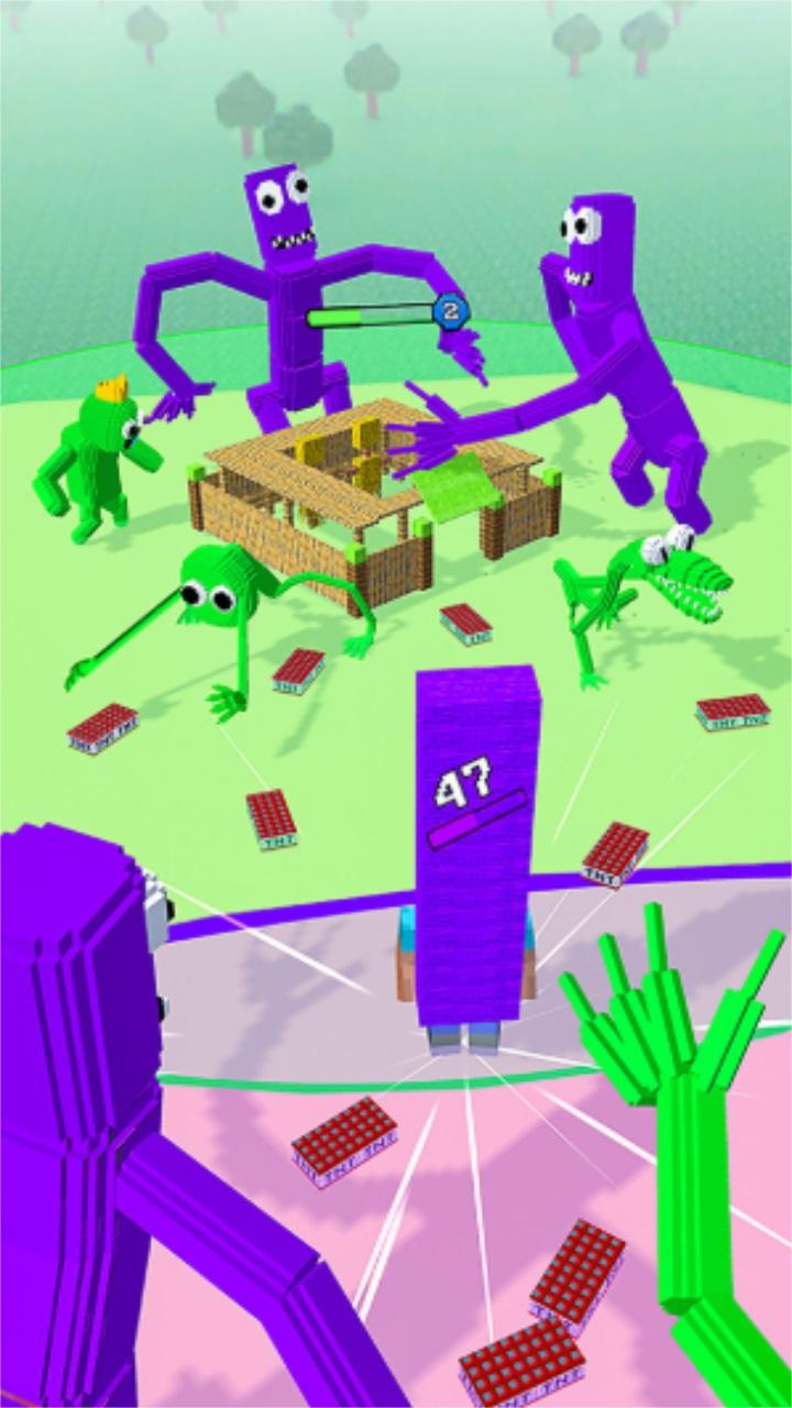 3、尽可能多的收集砖块,成为最后的幸存者,建立你的彩虹怪物军队,同时保卫你的工艺塔。只要你好好的享受,就一定是会得到最令你满意的时刻。