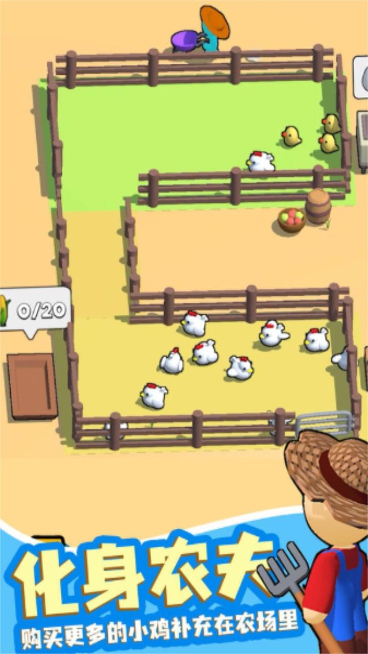 是一款简单有趣又好玩的休闲养鸡模拟游戏,玩家将成为一名养鸡老板,通过养殖鸡来获取收益,不断建设自己的场地,养育更多的鸡。游戏玩起来轻松有趣。