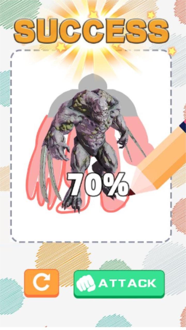 玩家还可以去选择自己喜欢的等级模式进行战斗,难度也是不同的;一款有趣的绘画游戏。 画出你的怪物并参与战斗。