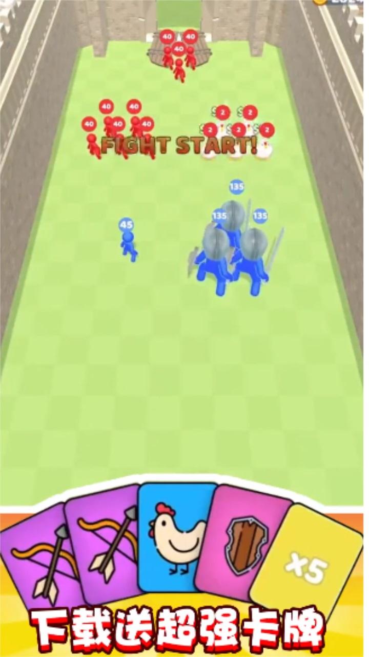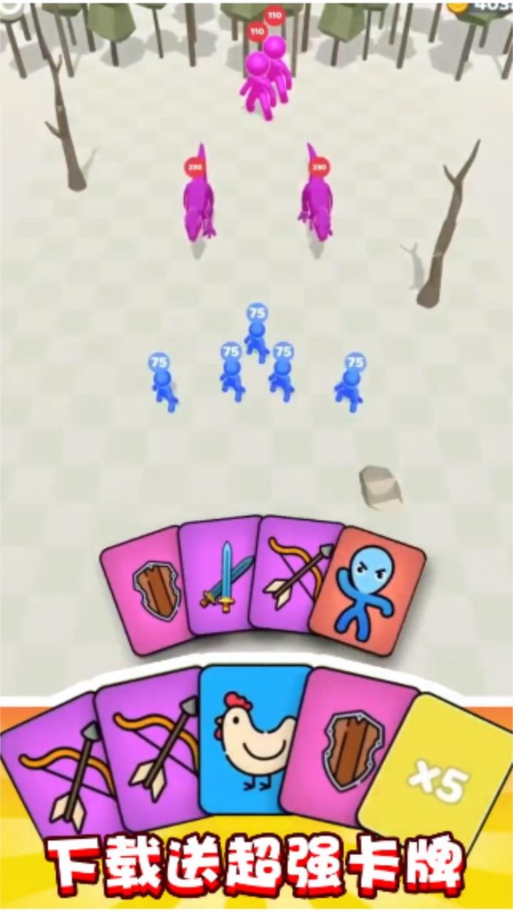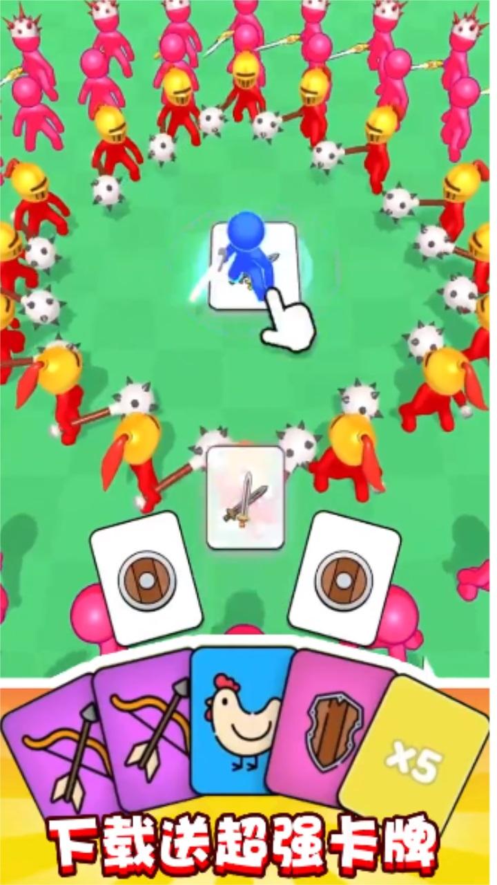 兵多多出击是一款超级好玩的手游,你还在烦恼找不到好玩的游戏吗?小编给你推荐这款超级好玩的游戏,开局就送你几张卡牌,使用这些卡牌和士兵融合,融合错误,就会使战斗失败,所以我们需要好好的合理分配这些卡牌,一定要胜利呀。