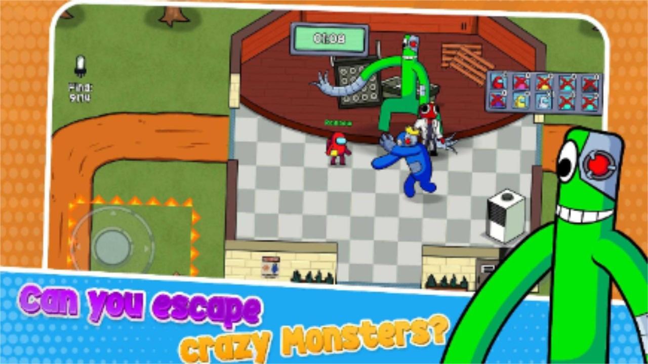 我是一个怪物朋友,你在这个彩虹怪物io游戏幸存者的向导。在彩虹怪兽手机游戏《幸存者》中,你扮演一个无名的孩子,在学校组织的去幽灵公园的旅行中被绑架。从你被抓住的那一刻起,你必须在这个除了你和彩虹怪物之外完全没有生命的陌生地方度过五个夜晚。五个晚上,每个晚上由一个特殊的任务或挑战组成,你必须完成,同时避免彩虹怪物。