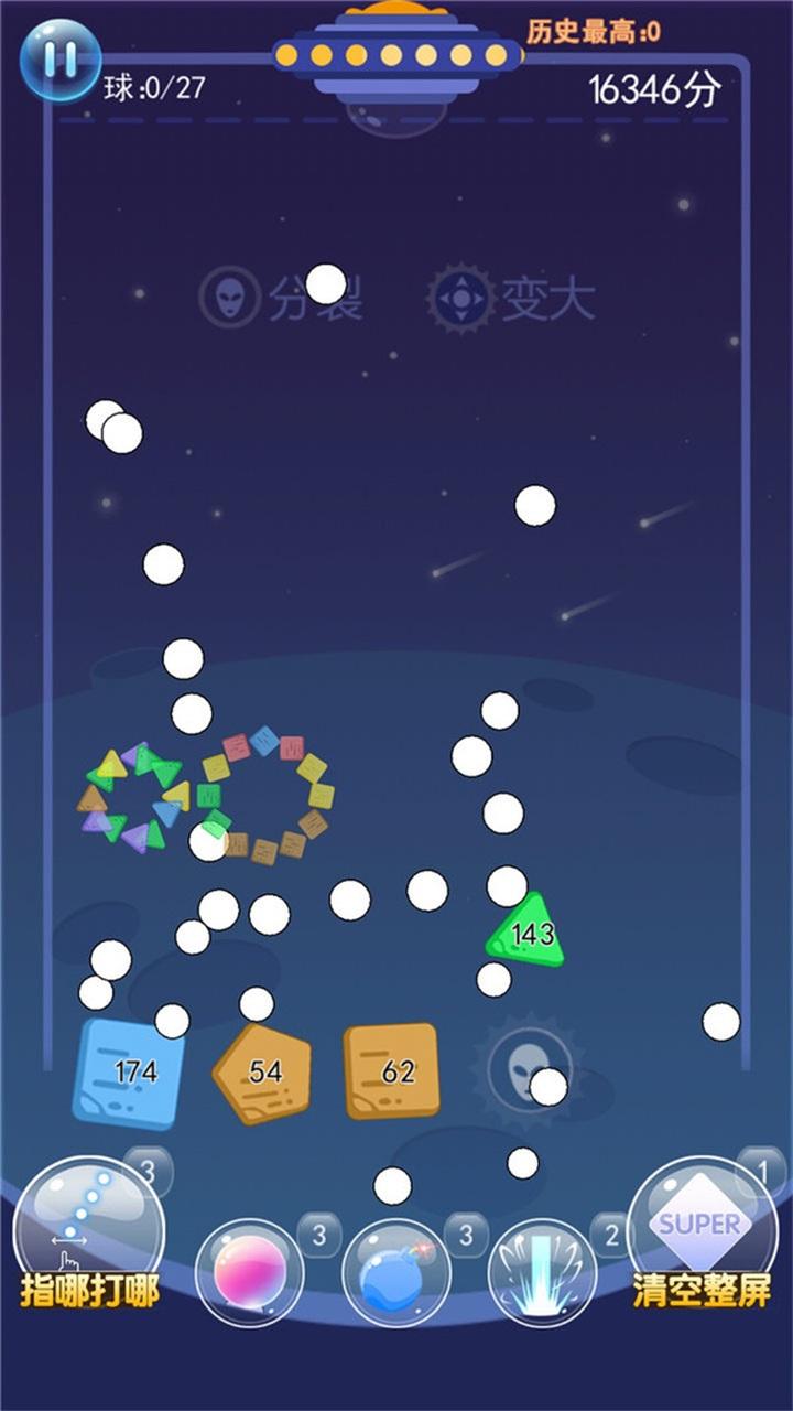 1.按住屏幕,水平拖动手指瞄准。放手发动所有等待的弹珠,轻松击碎所有砖块。