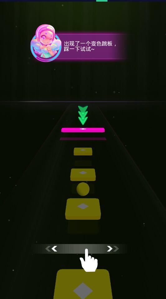 节奏感都比较强,玩家只需要指尖轻轻左右滑动跟随音乐节奏使音乐球球落到与球球颜色对应的色块上,以完成整首歌的闯关;