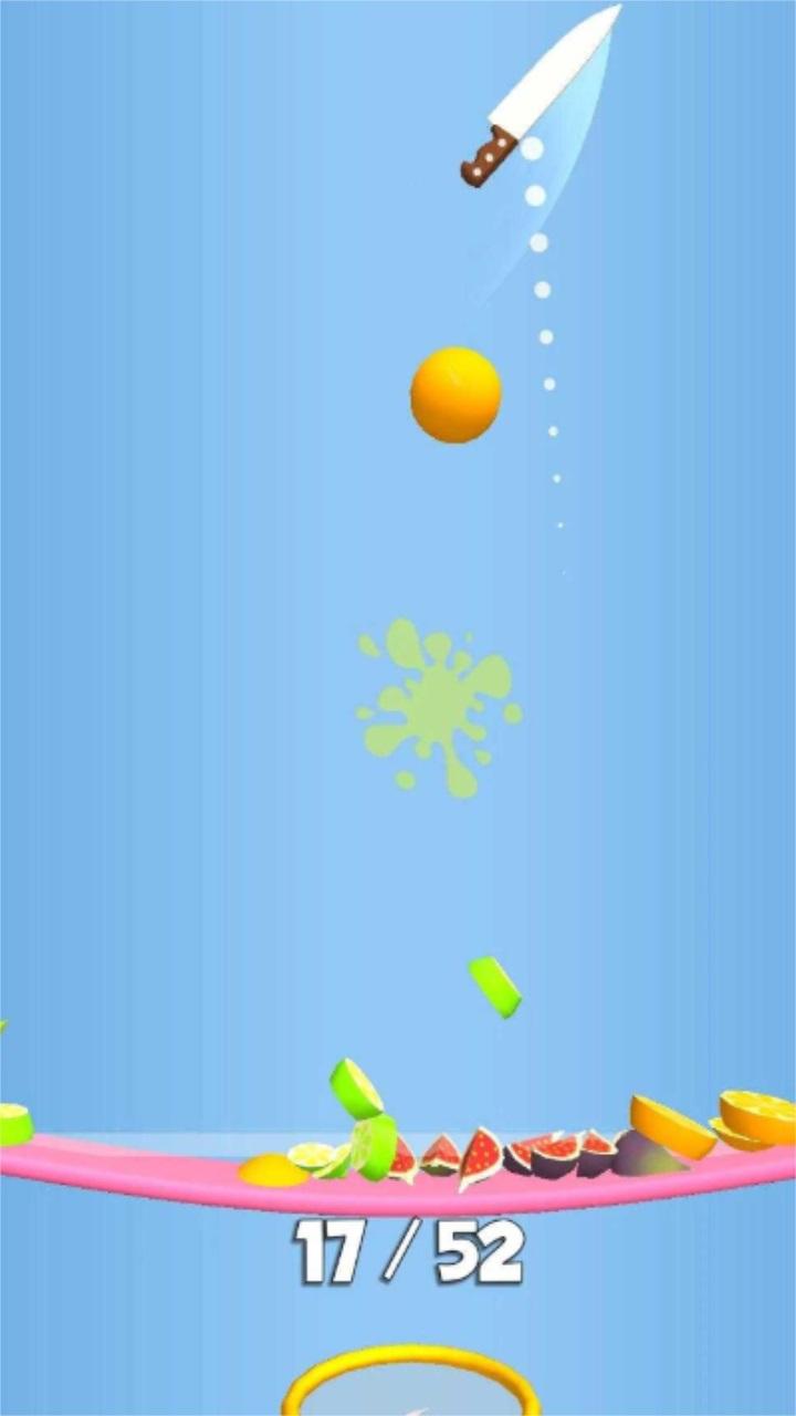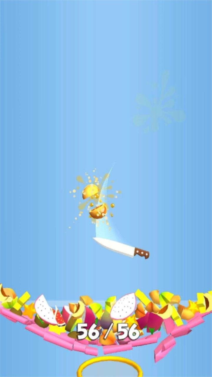 关卡的难度会逐渐升级,后期水果旋转的速度会越来越快。喜欢的玩家可以尝试,游戏不会让你失望的,将所有的飞刀都射击到水果上面,要注意已经插在水果上的飞刀,