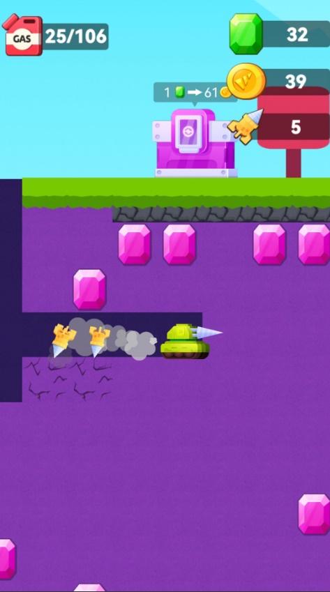 宝石挖掘机是一款休闲的模拟游戏,玩家可以控制挖掘机来挖掘各种宝物,玩法非常的轻松休闲,操作也是很简单的,越是稀有的宝石就越在深处,升级您的钻头和道具等等,前往到地底深入探索宝物吧。