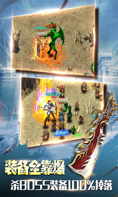 1.打怪轻松爆无限的传奇资源和装备。急速尝试,快速的升级。