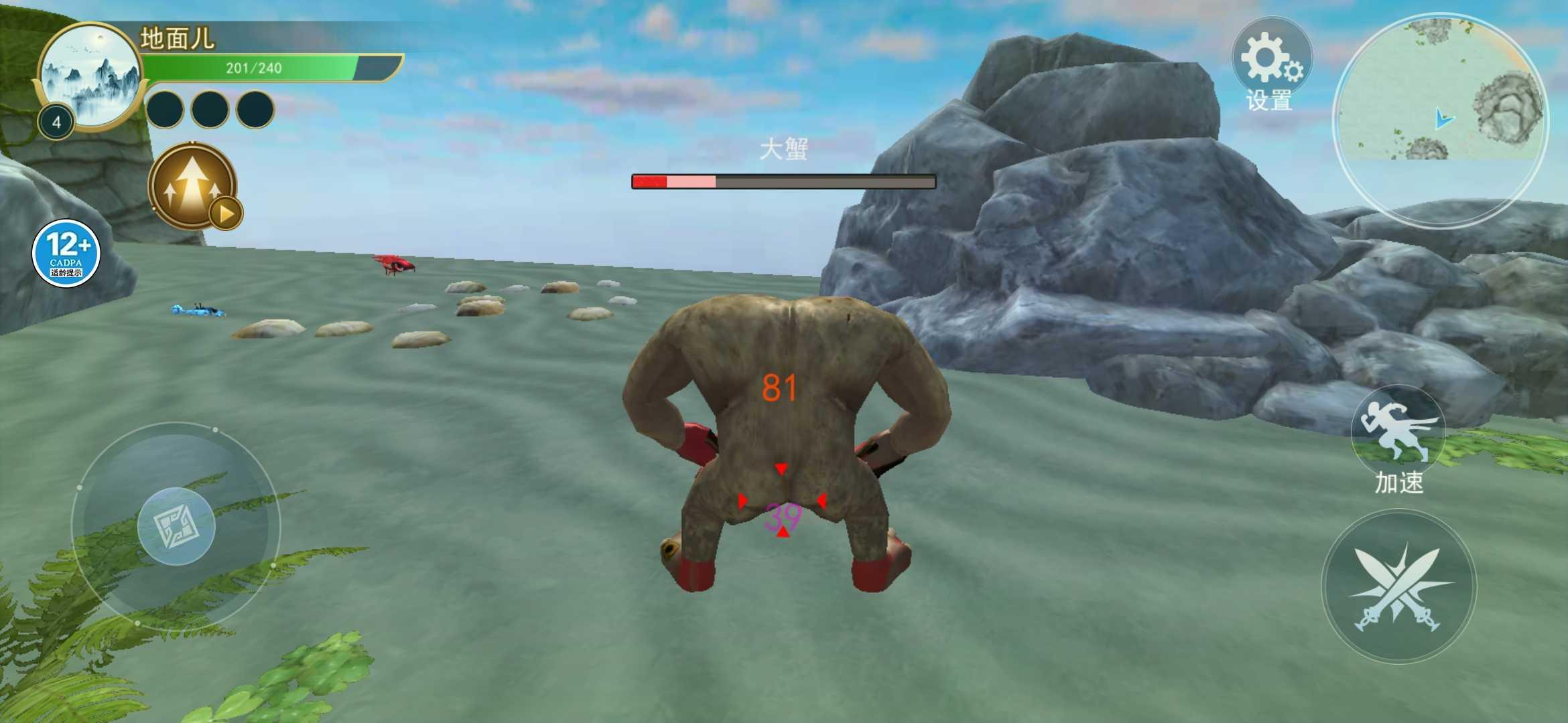 2.玩家可以观察周围的景象,快速找到弱小的动物,直接进行吞噬,角色将会成长的越来越快。
