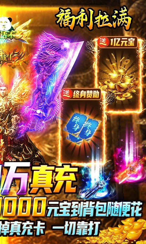 2.创角就有100000000元宝,直接买买买,爽到飞起,超级白虎,打怪无压力!