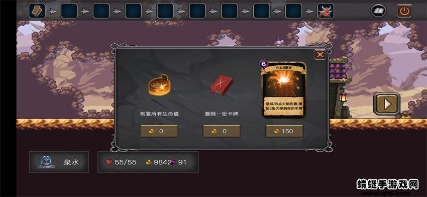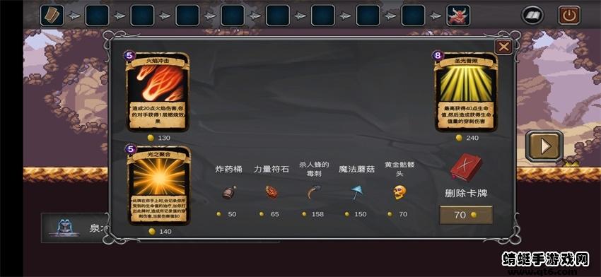 每个地图上存在泉水,在泉水中可以购买卡牌,删除卡牌。