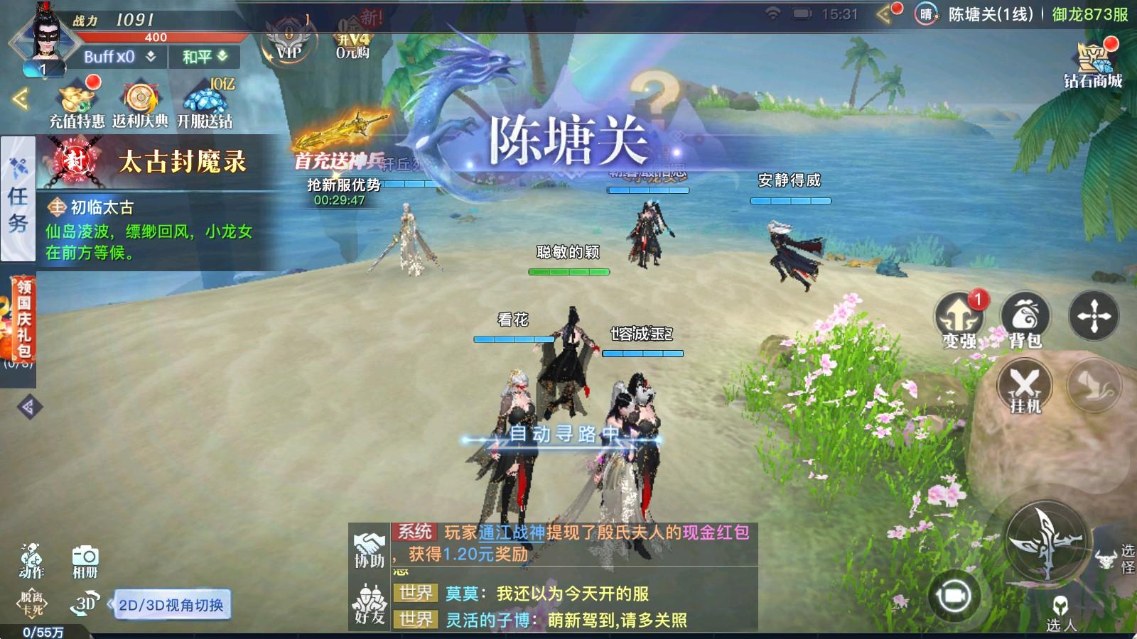 1、精致唯美的仙侠风格画面,多种经典门派任你选择,全新放置挂机玩法,解放双手,让你随时随地畅玩游戏。