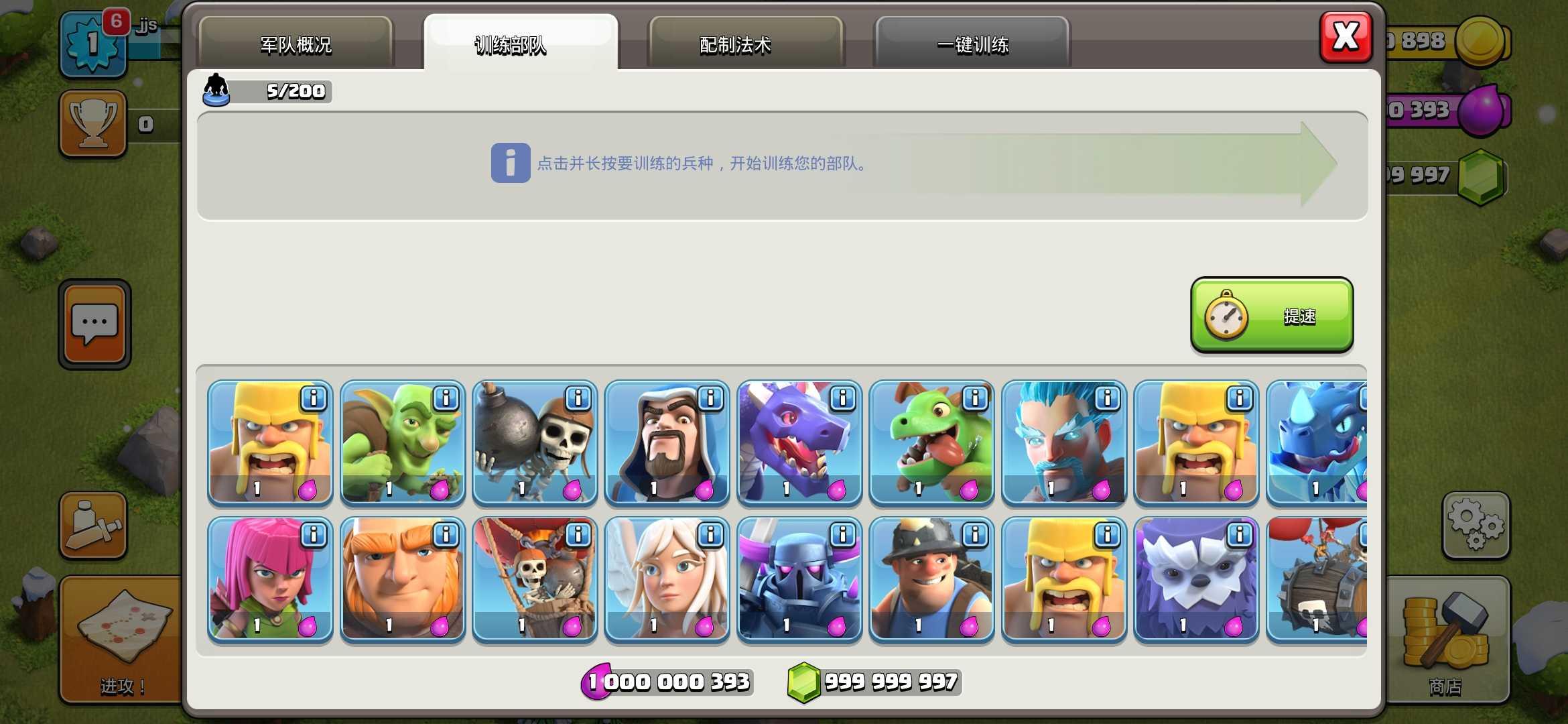 更多升级资源,由于这款游戏是搭建的私服服务器,因此玩家拥有的资源数量相当可观,玩家可以在很短的时间内就将大本营升到12或者13级,直接体验后期的游戏快感;