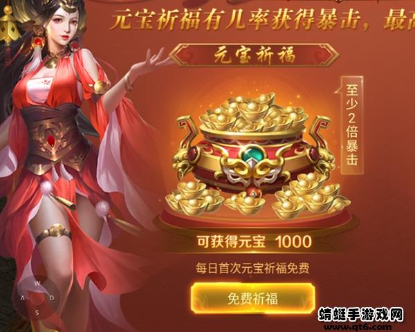 4、祈福是获得元宝的最快途径,祈福还有几率5倍,10倍暴击!祈福次数越多,获得的元宝越多!