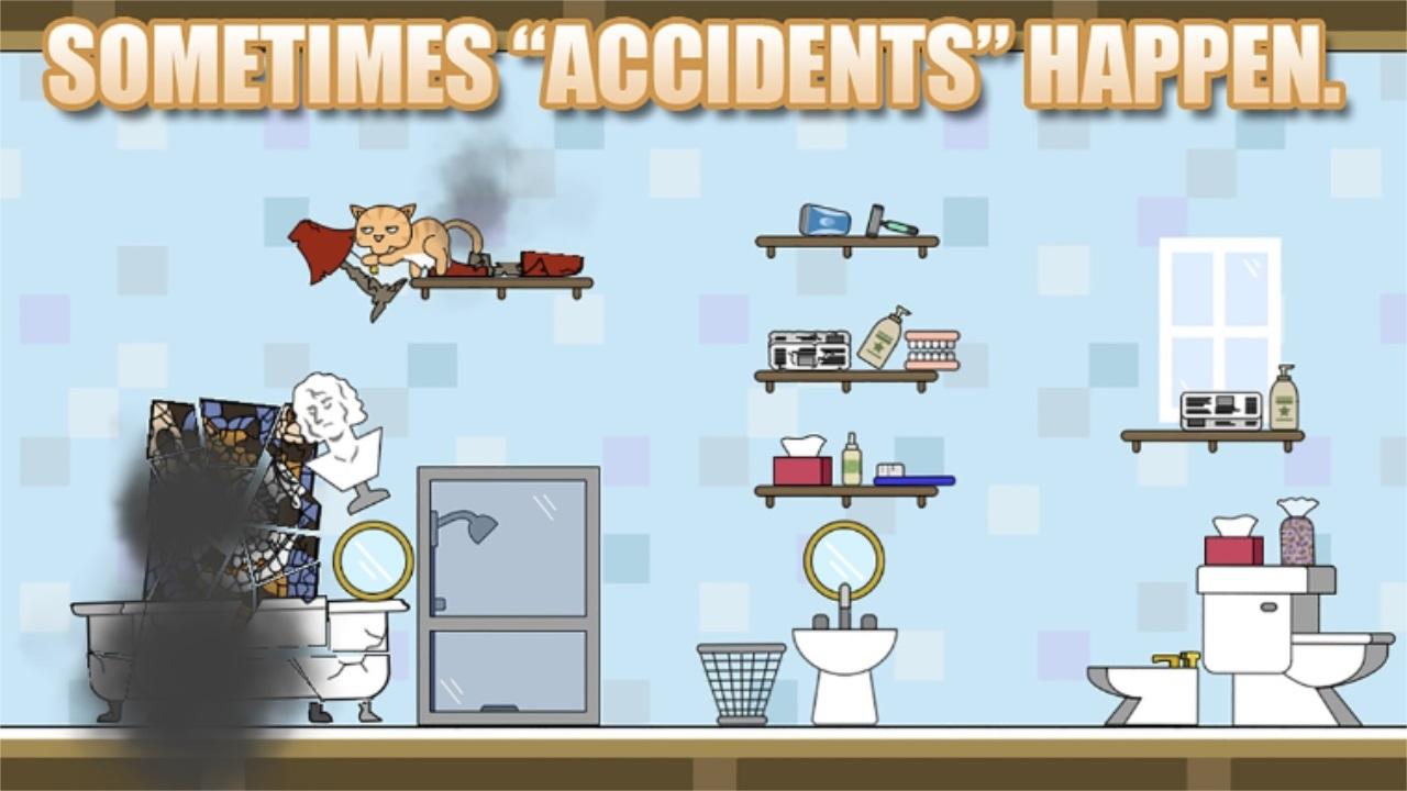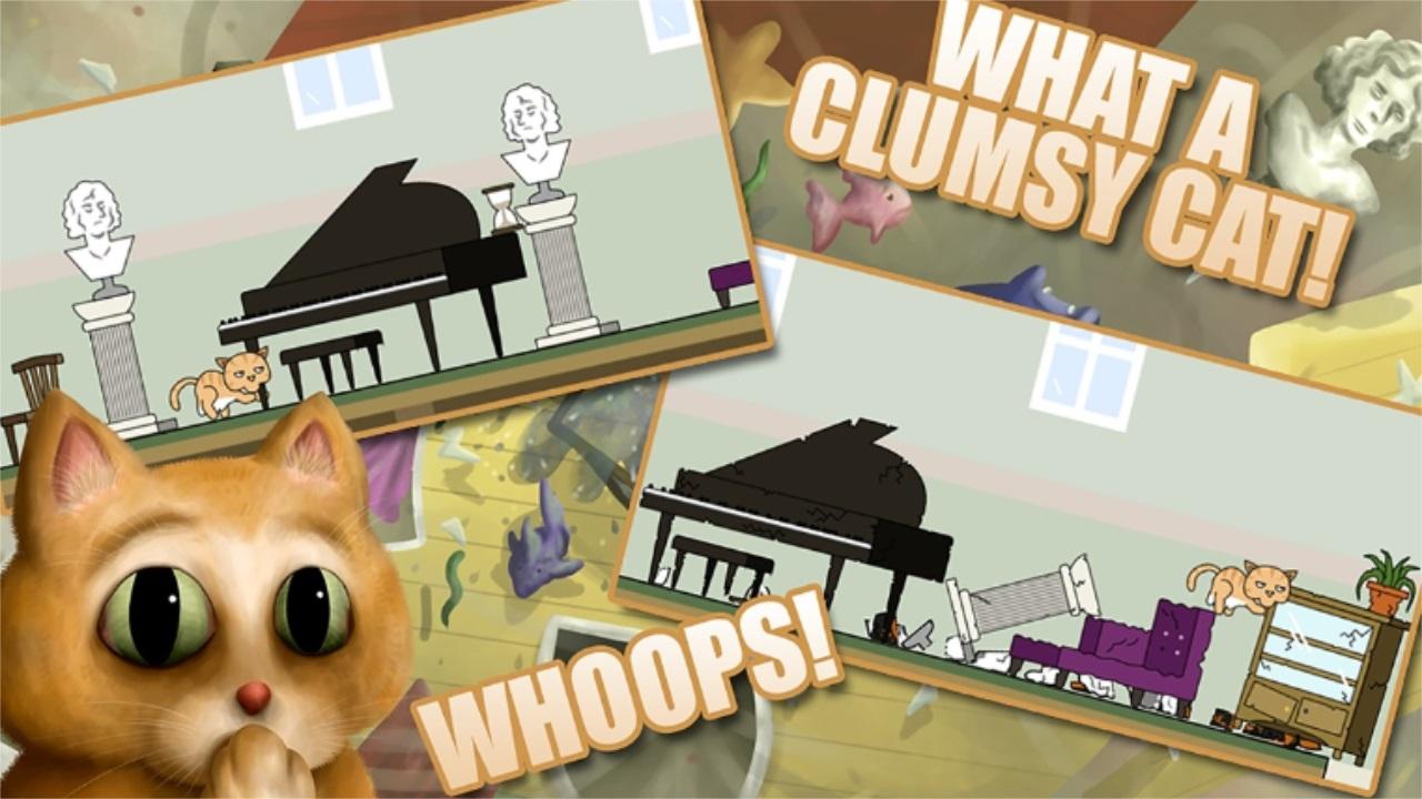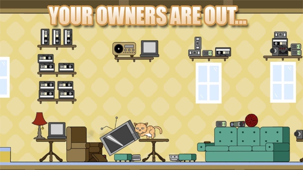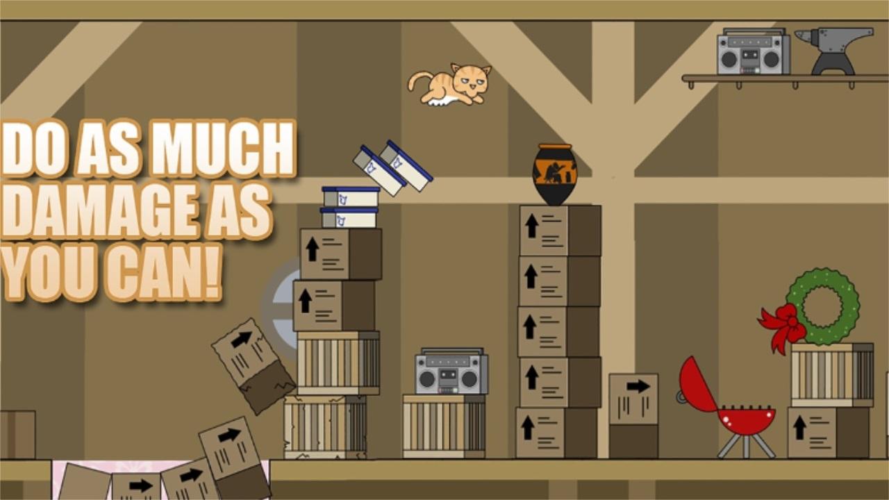 你是猫,您的主人让您独自一人。 在回来之前,尽可能多地损坏。 摧毁四个层次 - 房屋,博物馆,学校和购物中心。