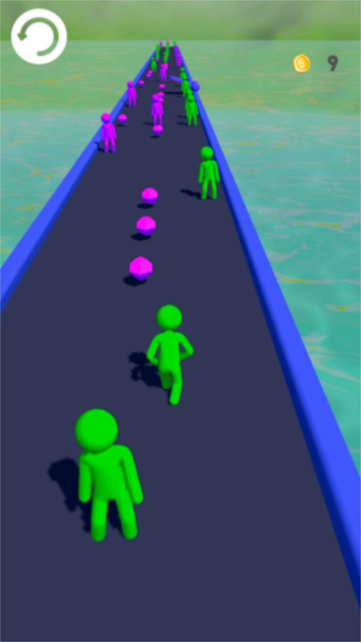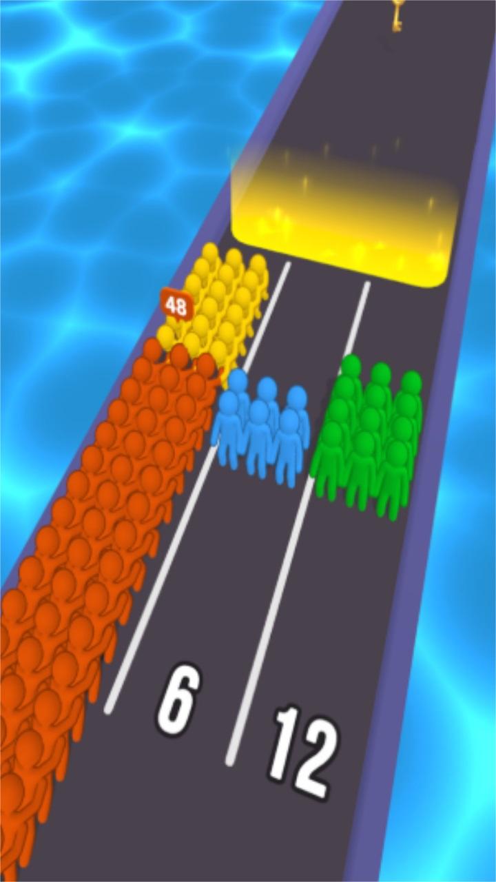 你的队伍成员在奔跑中会因为阻碍和道具来变化,你的首要任务就是带领最多的成员到达终点,你不仅是一名跑步者,而且是整个人群的老板,领导并集合更多的跑步者一起奔跑。