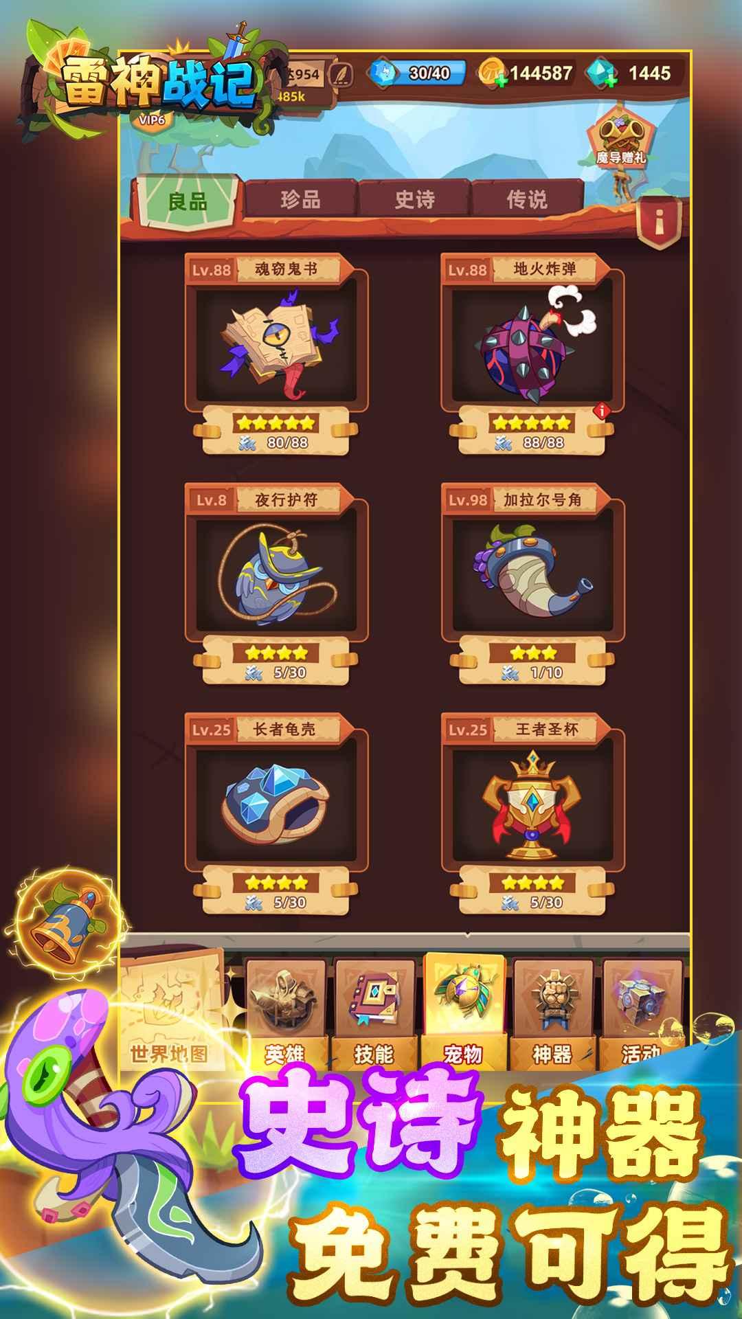 2.有很多神器等你来选择使用,五种不同属性的能力可以任你来搭配。