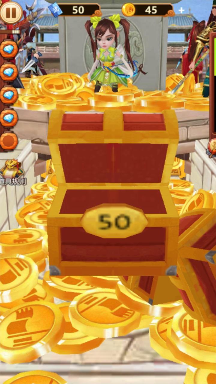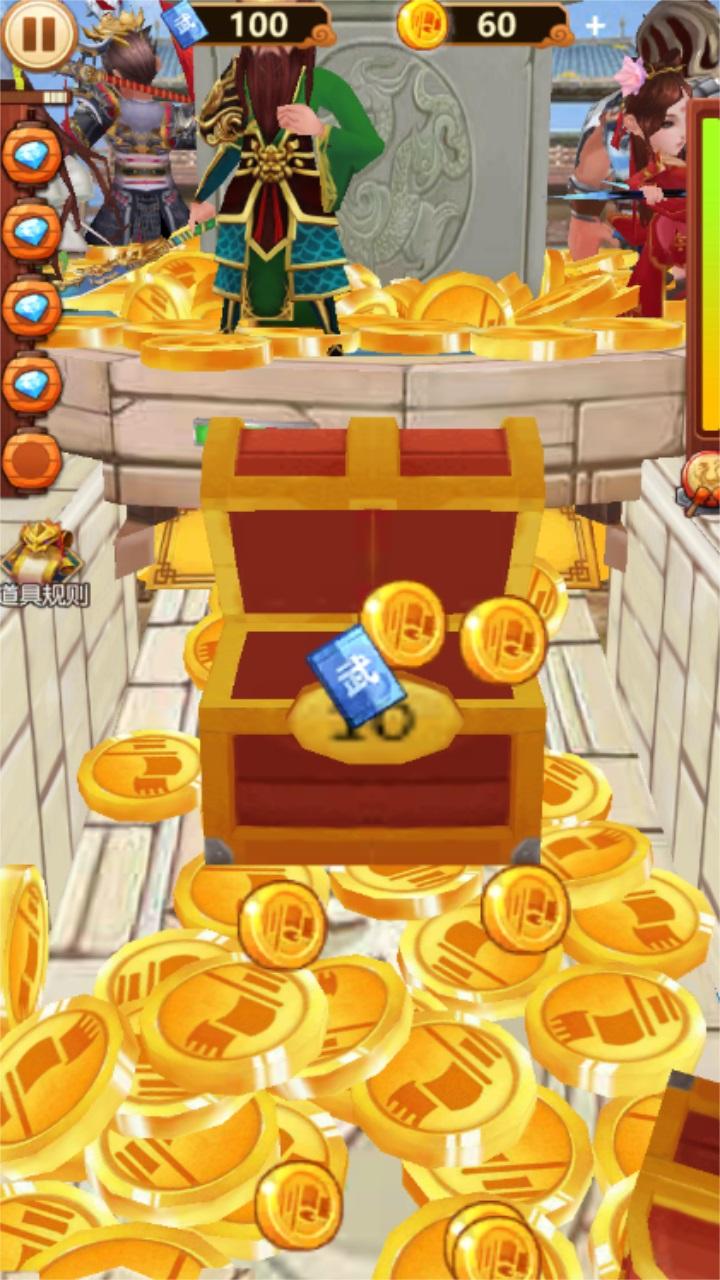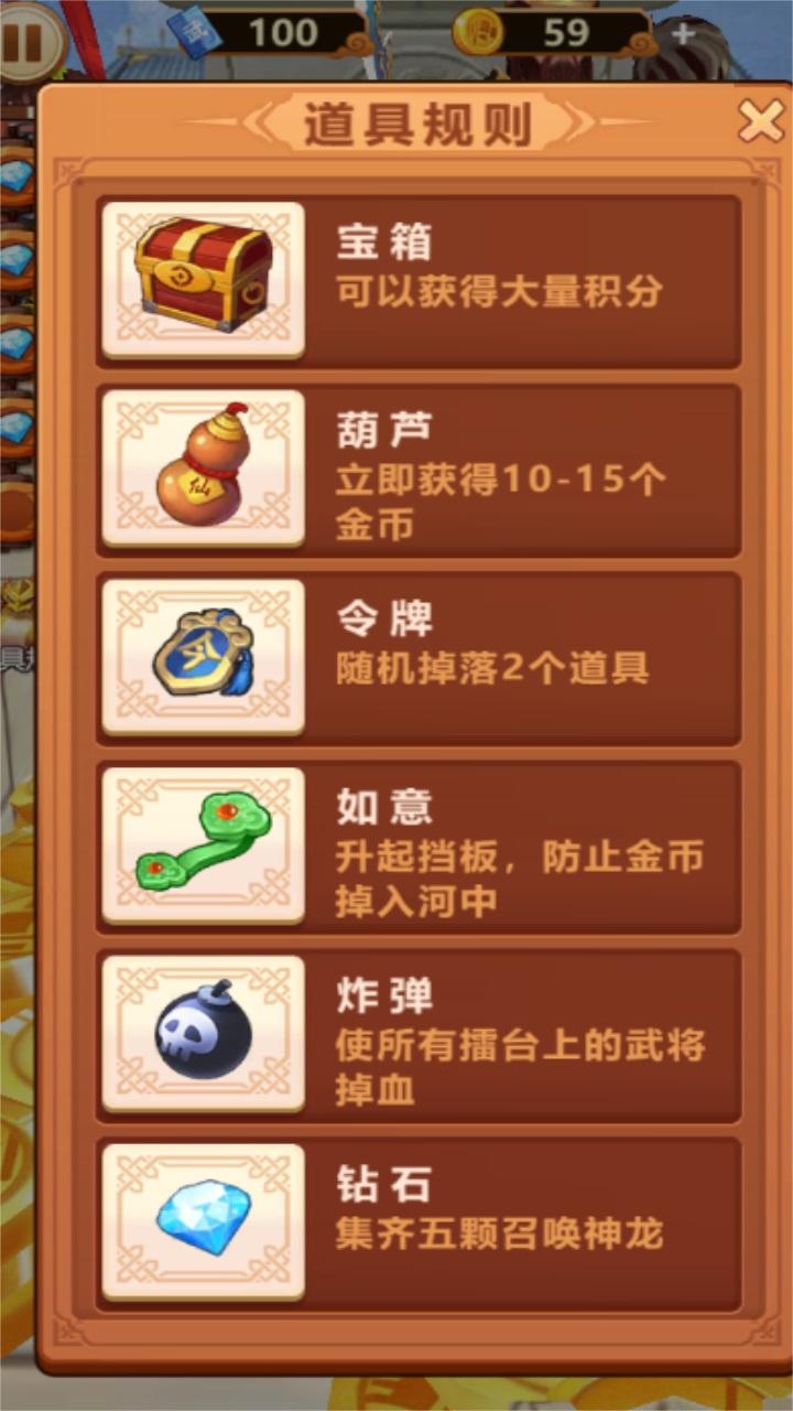 主公贼有钱是一款拥有三国人物角色的策略手游,经典Q萌的游戏角色,让我们进入游戏就会放松自己,宝箱可以获取大量的积分,葫芦可以获取10-15 个金币,如意可以升起挡板,防止金币掉落河中。