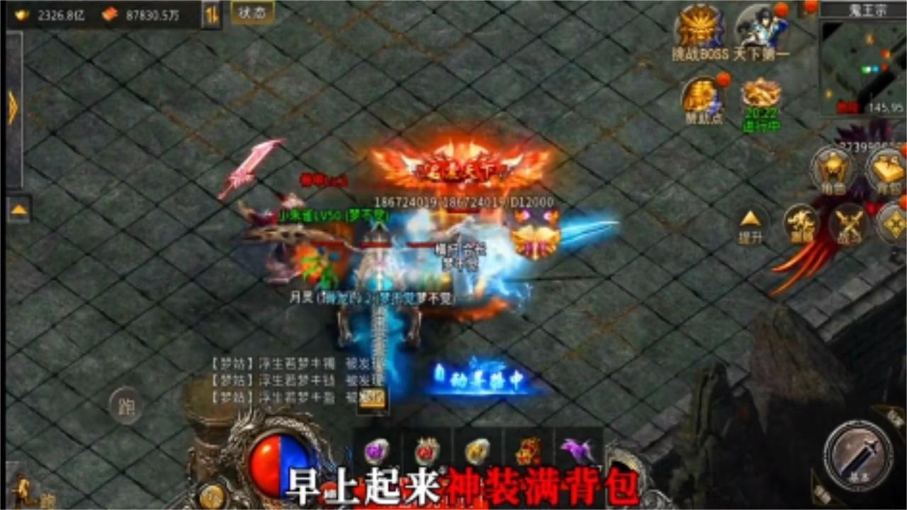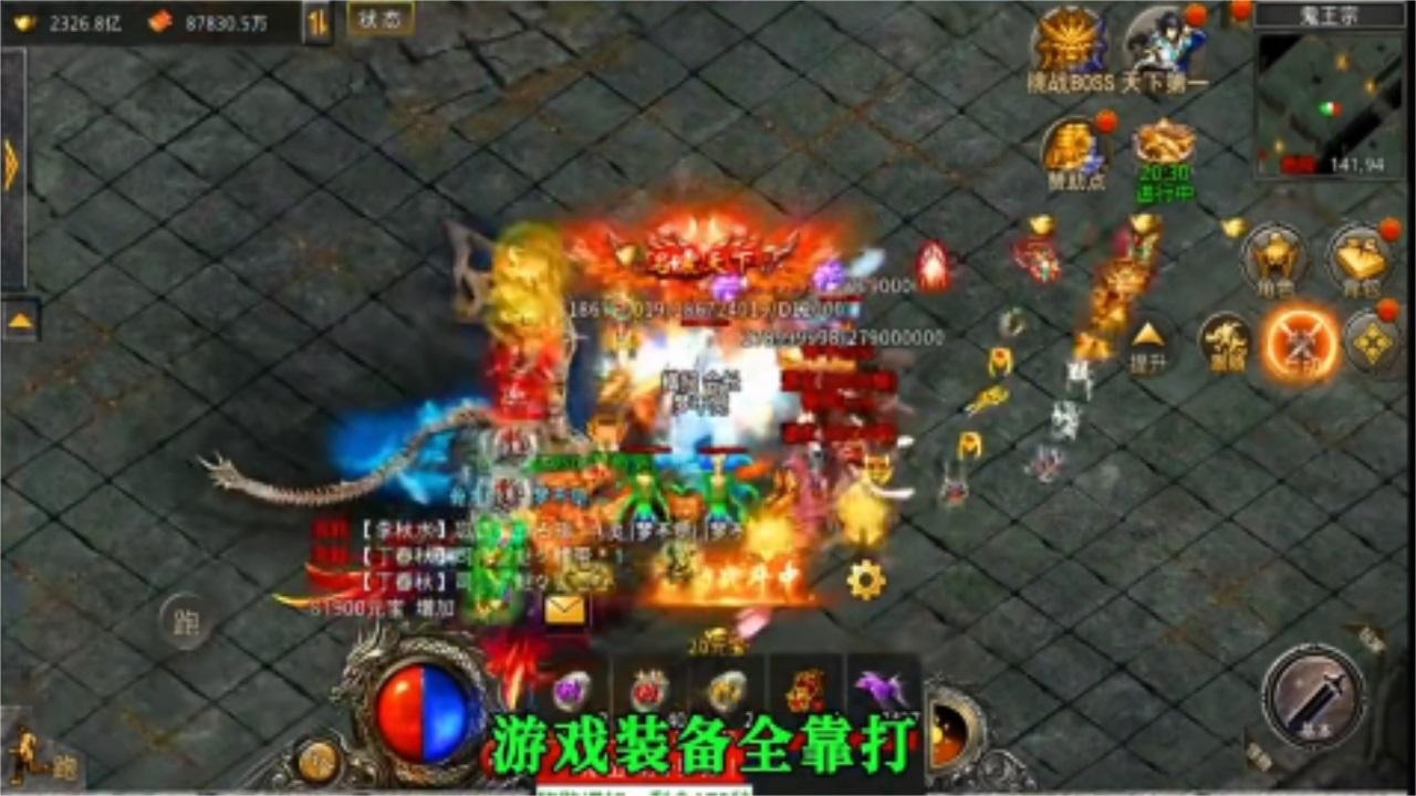 2、齐心协力打boss,爆发出来的装备更是凤毛麟角。可以秒在线兑换元宝,不断强化战力;