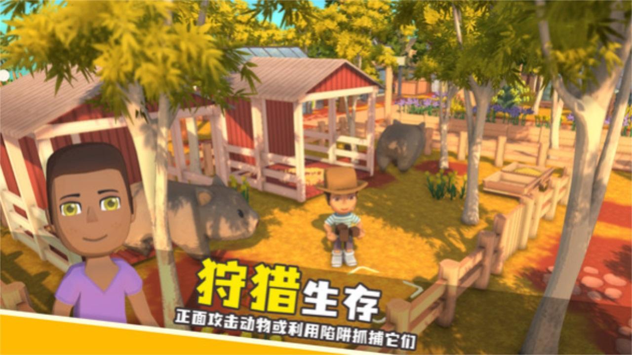 澳洲梦想镇是由池州市贵池区蓝园信息技术中心推出的一款模拟经营的手游,从一开始睡在沼泽地到广阔城镇,建造属于我们的自己的家园。制作物品,开设特色的商店,吸引更多的居民的居住,狩猎生存,正面攻击动物或者利用陷阱来抓捕它。自定义角色,将房屋打造成自己的舒适居住所。