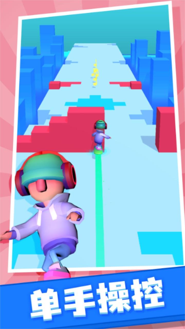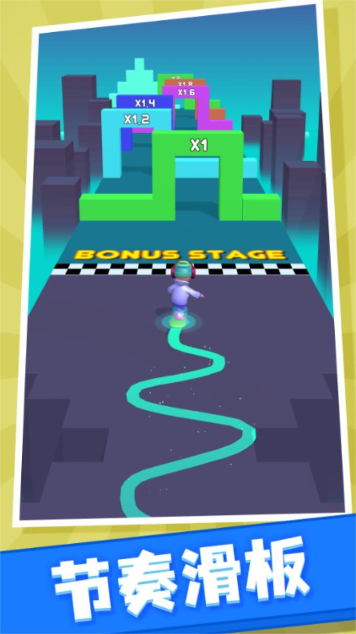 这是一款现在所有人都在玩的动感节奏滑板游戏,非常的有趣。多种不同类型的背景音乐任你来选择,带给你刺激的闯关体验。
