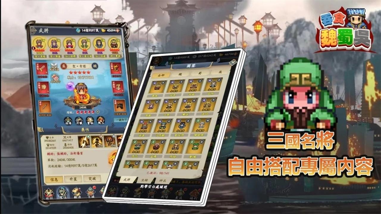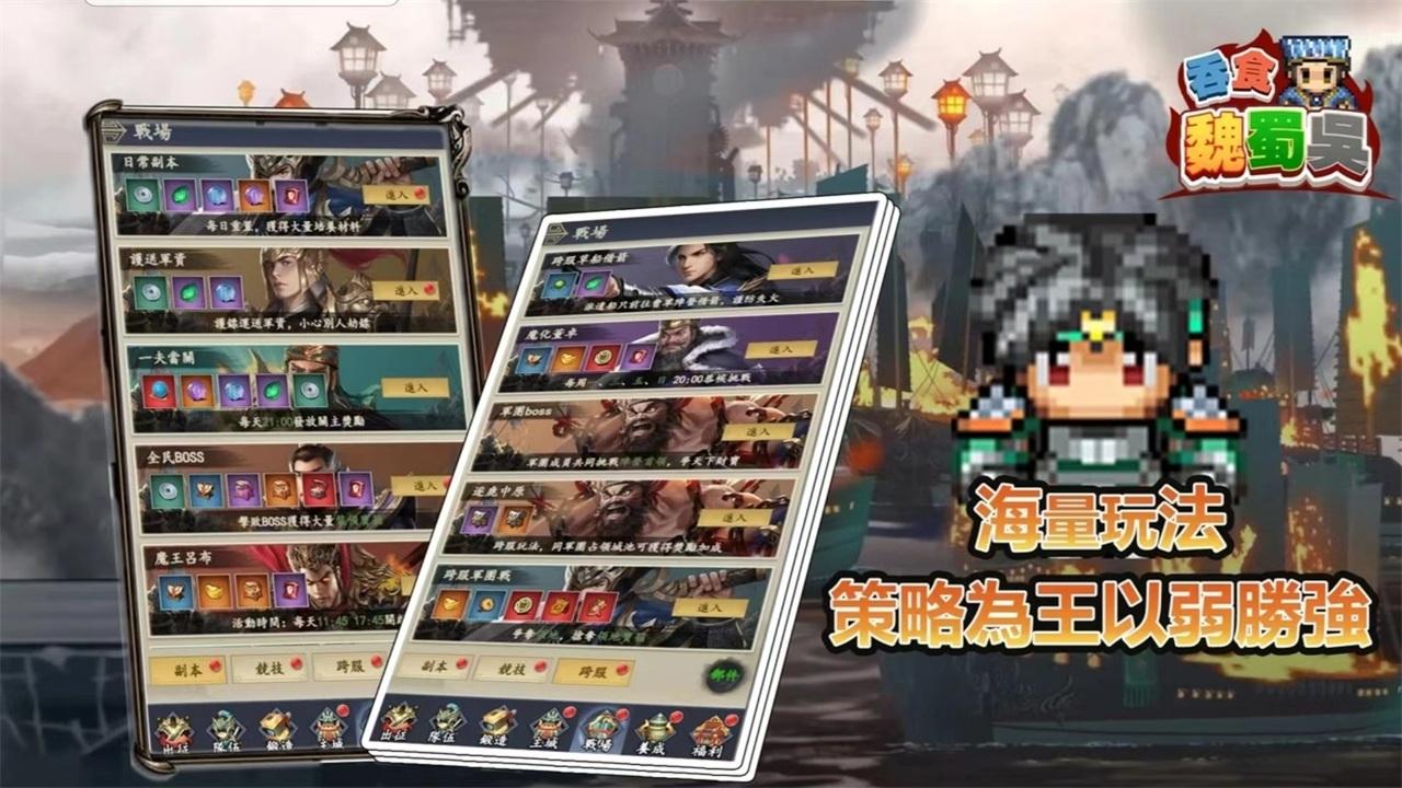 吞食魏蜀吴游戏,像素可爱的画风加上多样的策略回合制模式让你可以体验轻松的放置的战斗,游戏中还拥有非常还原的故事剧情,随着游戏的进程,你可以体验到丰富的三国故事,参与其中,改变战场的形式,取得胜利。