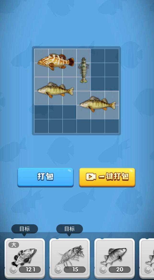 3.玩家需要将海货合理的摆放在背包中才算完成关卡,海货可以在鱼市中贩卖获得金币,至于其他用途,等着你来探索。
