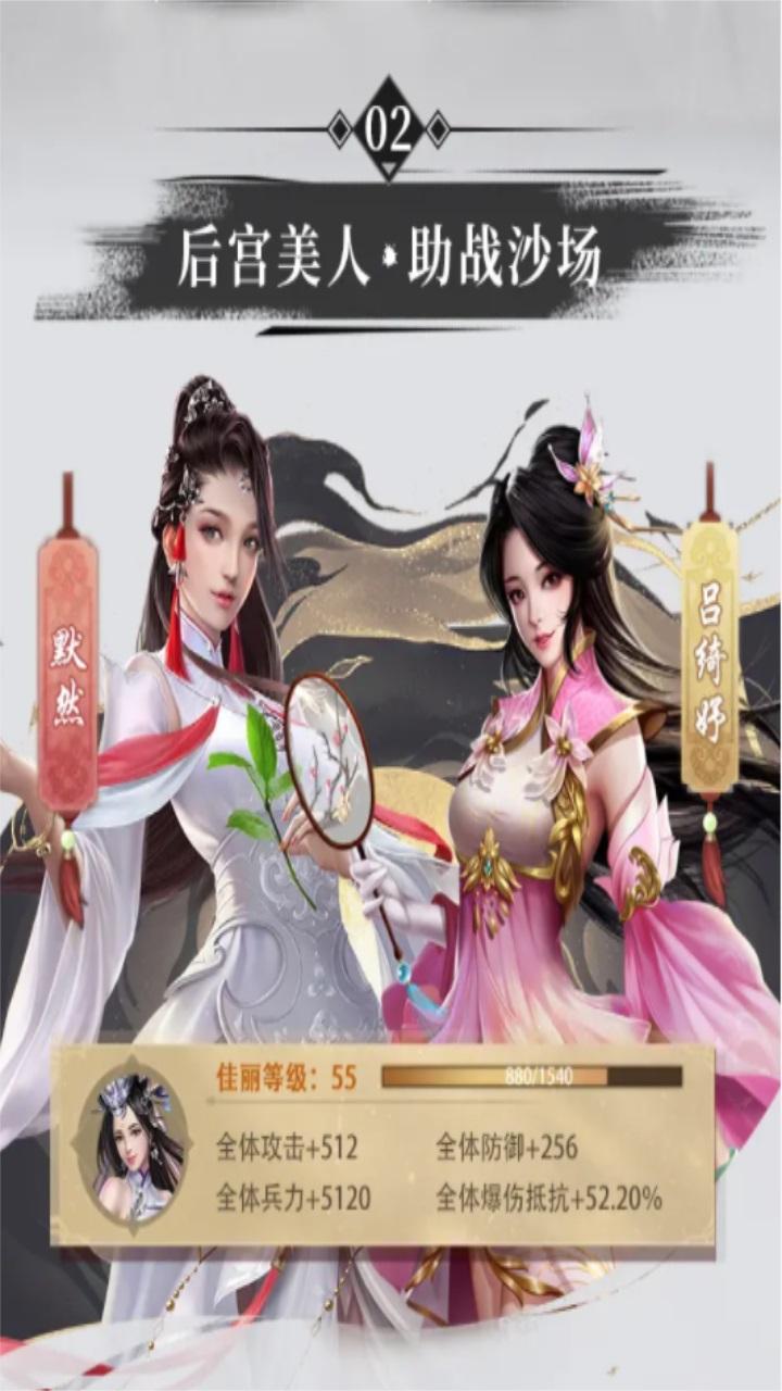 可玩性:这款游戏可玩性很大。你可以去匡扶汉室,自立为王:自立为王,由很多种玩法。比如说:你可以像刘备一样,那么仁德。可以像曹操那样一副奸雄的模样。甚至可以玩吕布那样崇尚武力。因为属性是自己刷的。