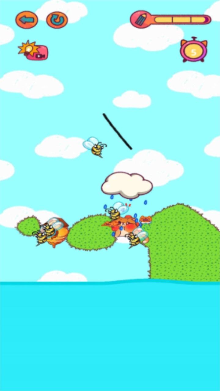 4、一款画线解谜小游戏,在这款游戏中,你需要用画线的方式来保护游戏中的猫猫,不被小蜜蜂扎到就算挑战成功,各种关卡的玩法都非常自由,你想怎么画就怎么画,赶紧来挑战吧!