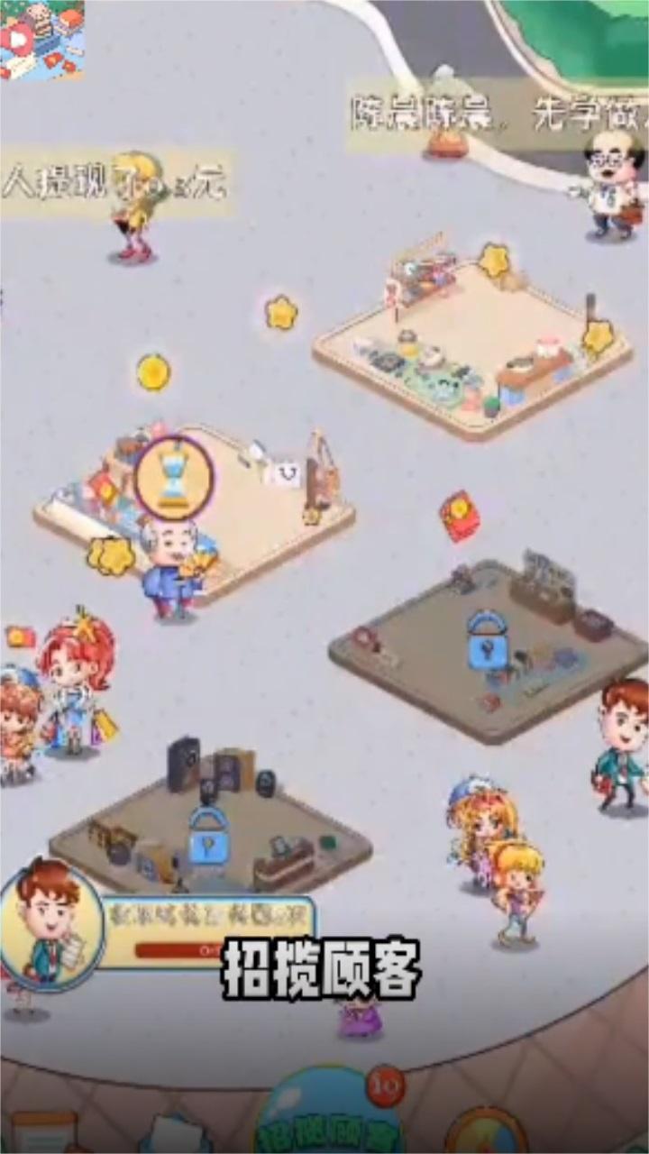 3、不断的扩张自己的店铺,收获更多的效益,完成不同任务领取奖励。一款通过经营跳蚤市场来获得现金红包的小游戏,只要肯努力玩,升级你的跳蚤市场,每次升级都能够获得奖励,所有的红包都是可以提现的哦。