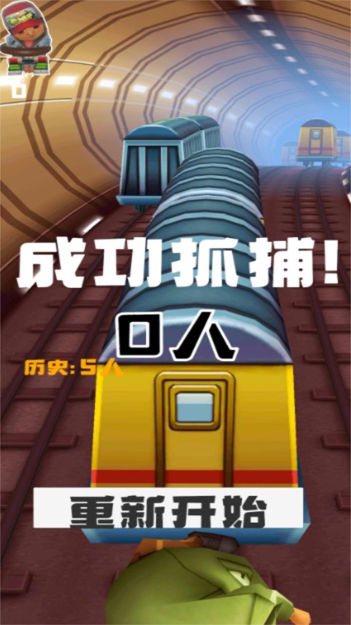 地铁抓捕是由M木糖M推出的一款跑酷手游,成功的抓捕地铁上奔跑的人,动画感满满的游戏画面,是一款趣味性十足的手游,想知道自己的游戏实力吗?想知道自己可以成功抓捕多少人呢?想知道自己是否可以打破记录吗?想的话那就来玩这款游戏吧。