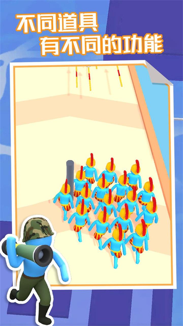 人类进化战争游戏,你可以在这款游戏中体验到简单的战斗冒险的元素,同时控制不同的队伍来进行攻击,在沿途还能拾取各种不同的道具来增加自己的角色能力和队伍的人数最后战胜敌人。