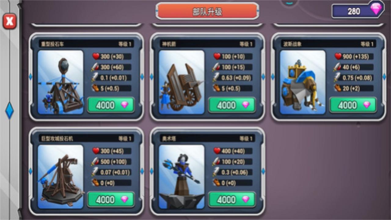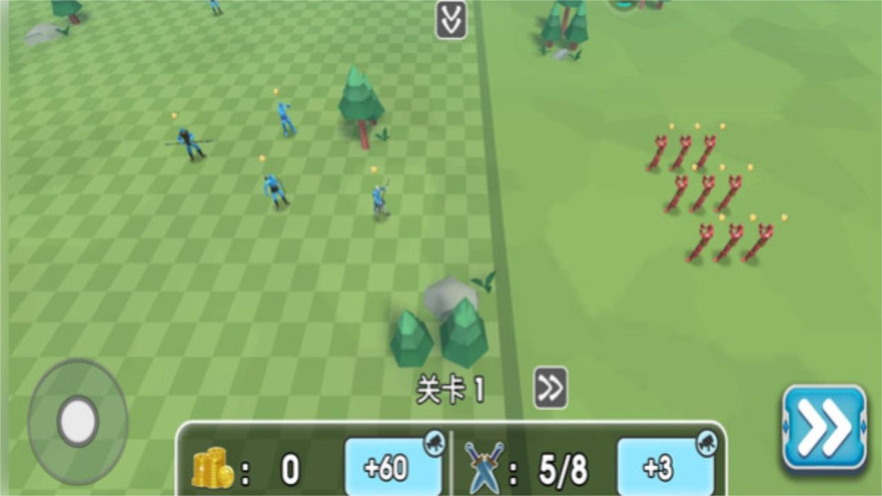 2、选择克制的兵种将敌人一举击溃!弓箭手、炮塔、长矛兵、近卫队等多种丰富的兵种的体验!你现在可以体验终极战斗模拟;
