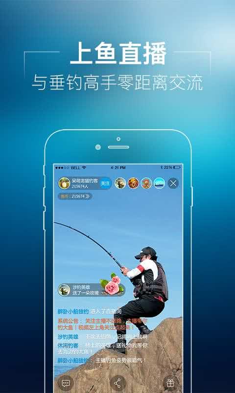 钓友直播:垂钓高手在直播间与钓友即时聊天,零距离接触,分享垂钓的技巧与乐趣。与高手互动,给高手送礼,向高手学习钓技。在这里,或许你就是明天的高手。