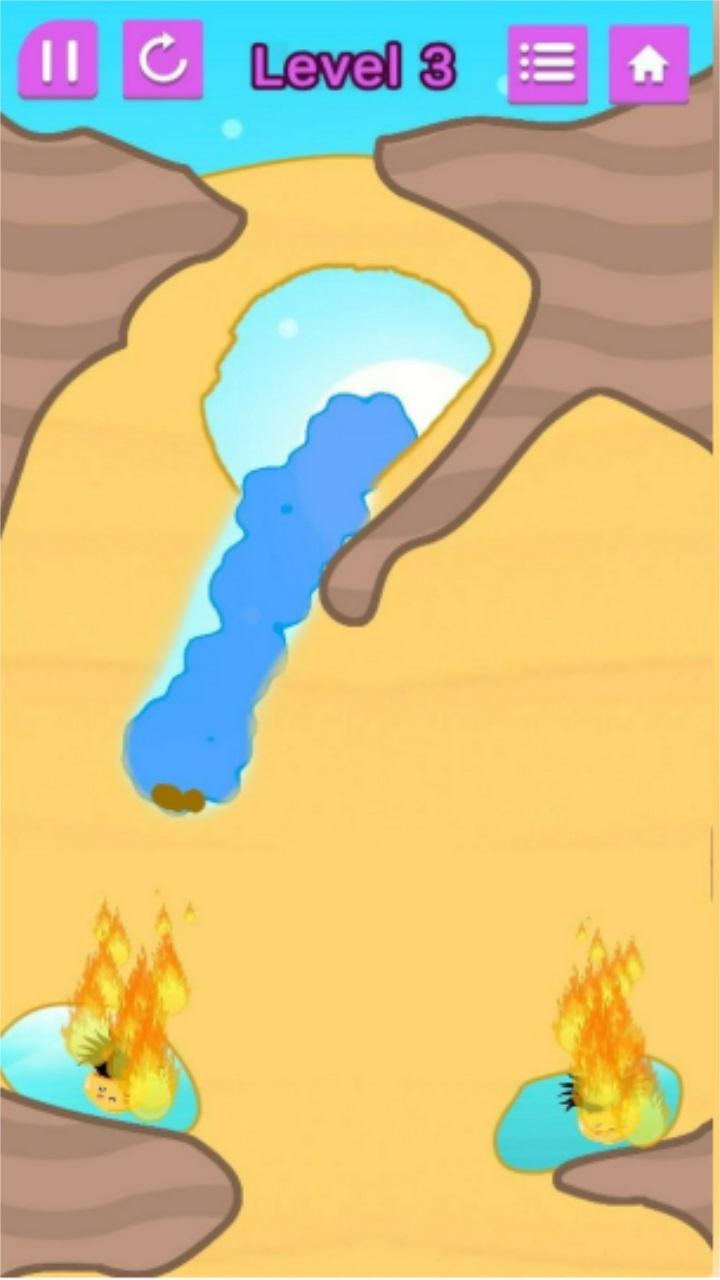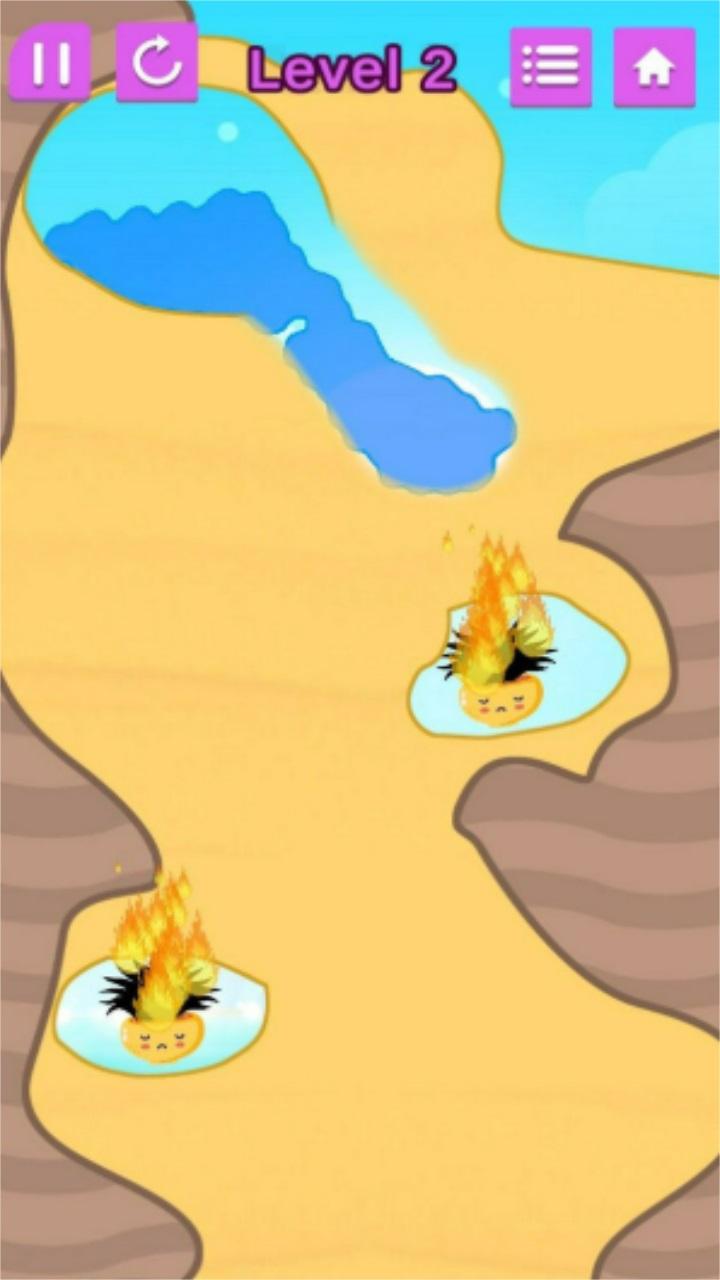 抹去地面,通过挑战性的物理拼图来收集所有的水。 一款非常好玩的趣味休闲闯关游戏,简约精致游戏场景画面,简单灵活的操作玩法,在超级挖水大师手游中,玩家需要通过滑动手指将水引入正在燃烧的植物身上,疏通水源,游戏关卡丰富,快来体验吧。