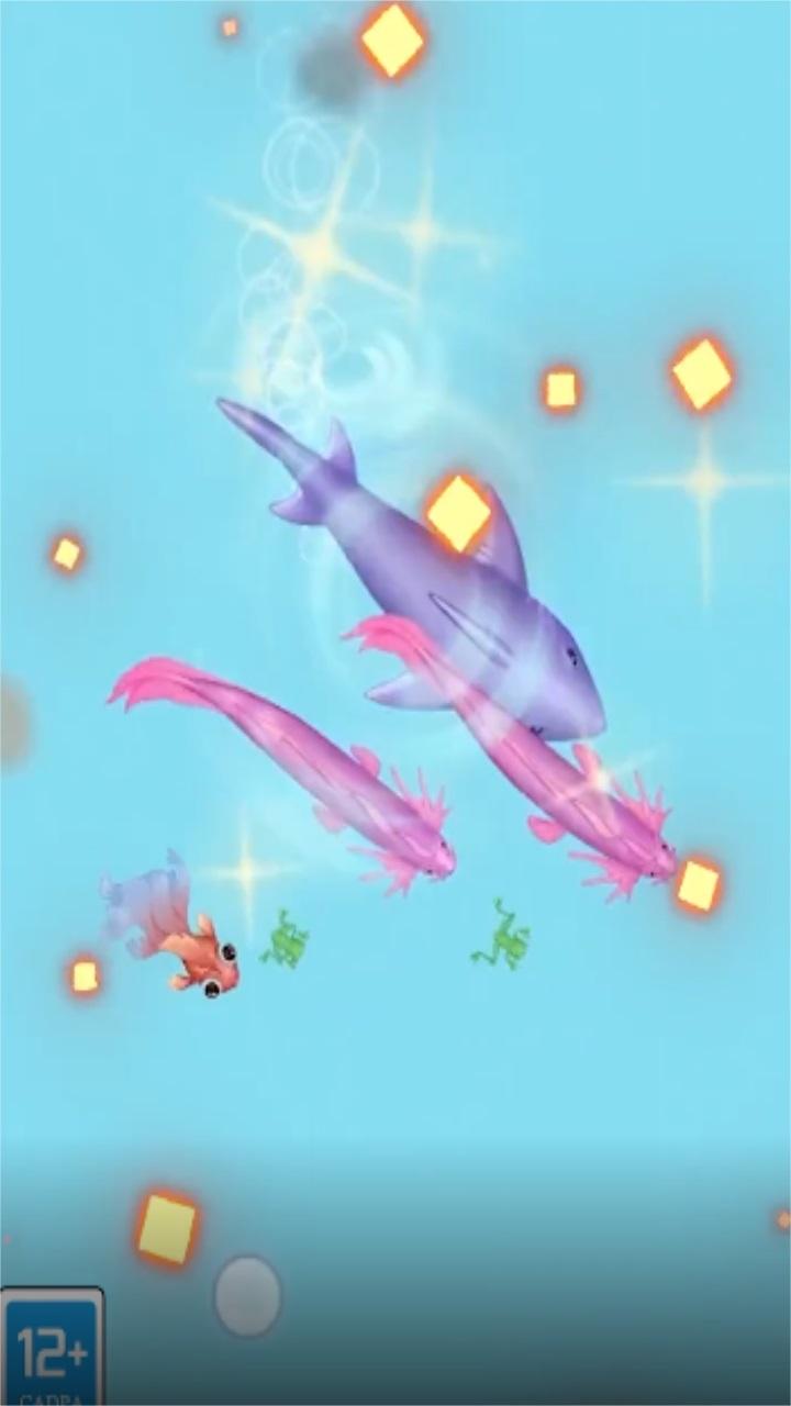 2、只要模型碰到就算吃掉,可以把控好距离再甩尾,用尾巴吃掉大鱼堆里的小鱼。