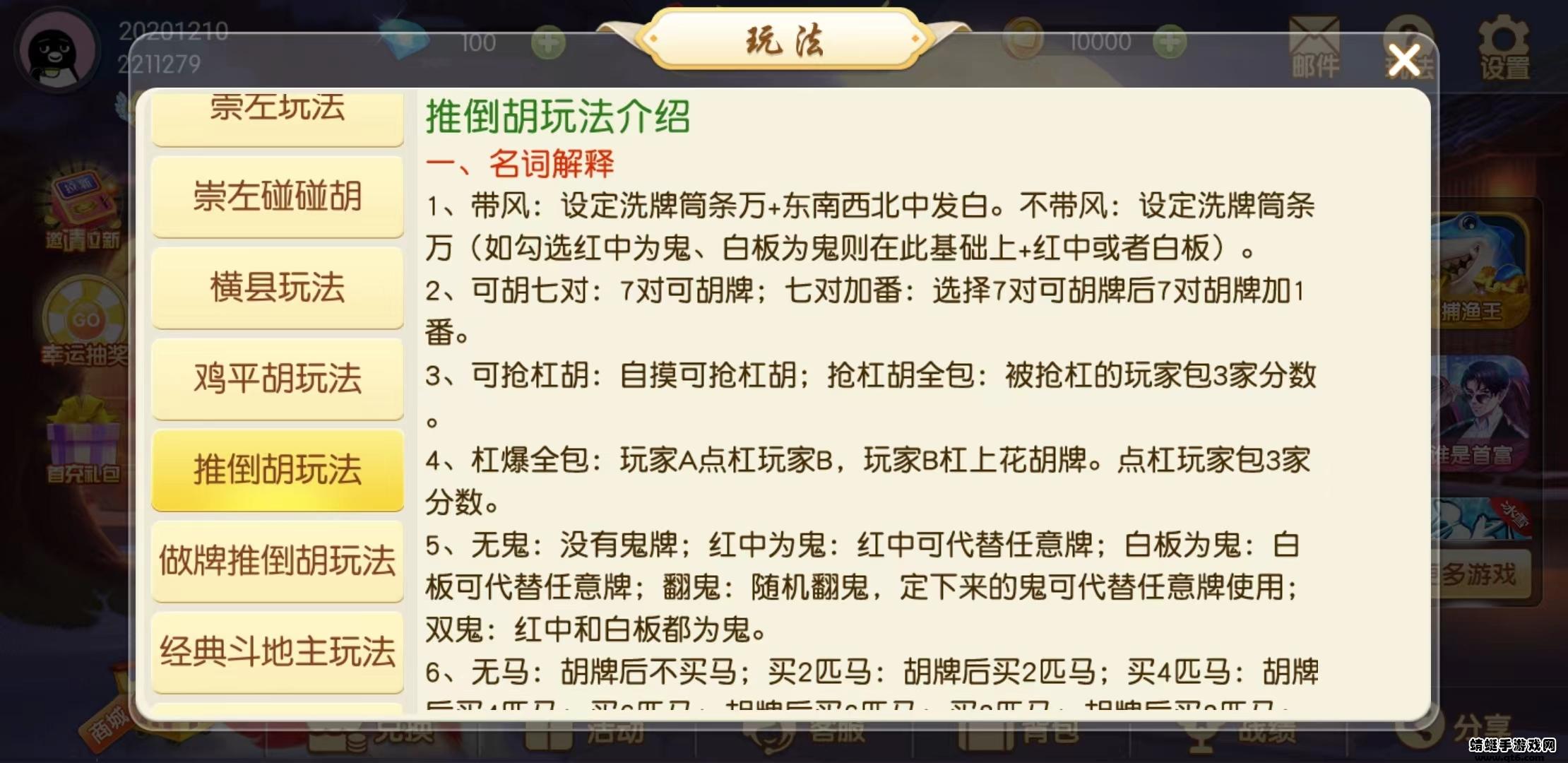 1.浙江、湖南等地特色棋牌游戏、麻将、扑克、跑胡子等游戏;