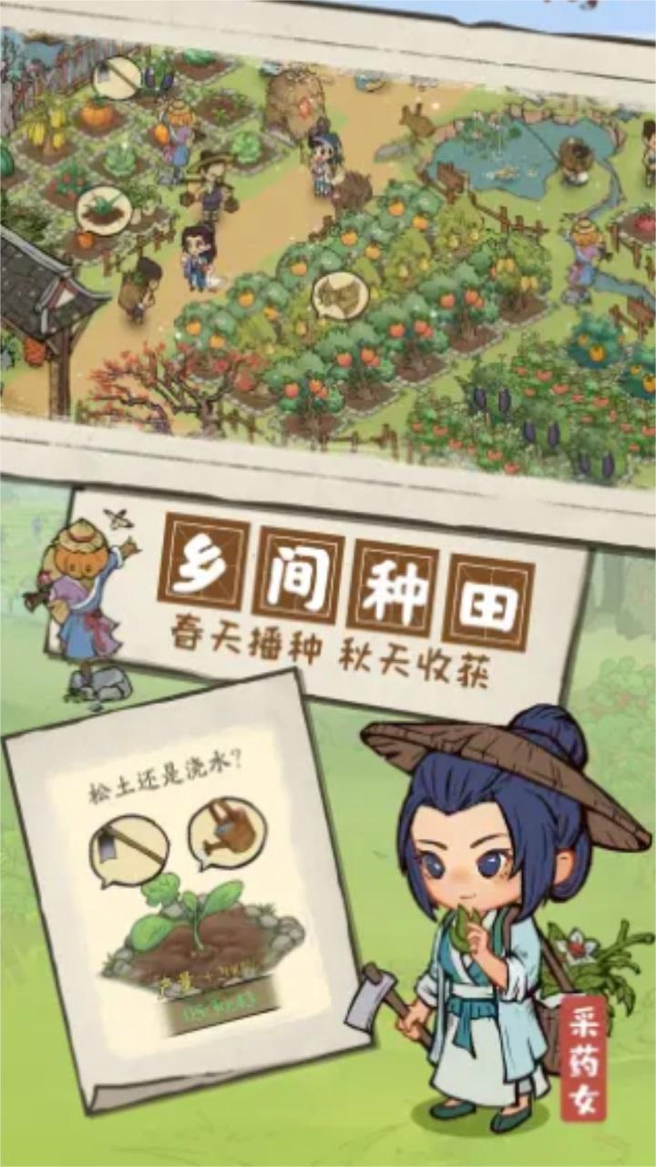 1、玩家需要开垦荒地,种白菜,种南瓜,种萝卜,进行培养,最终获取丰厚硕果;