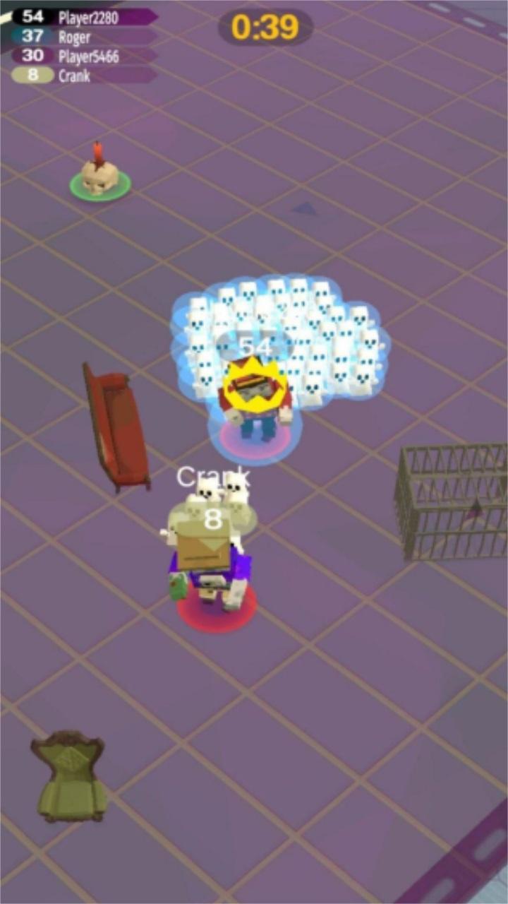 在拥挤的城市中召集最大阵容!游走于城市各个角落,收集散落的小僵尸,同化其他小团体,组成超强阵容!组织你的团队,战无不胜。在拥挤的城市和其它玩家一决高下。简单直观的游戏玩法,刺激无比的各种随机冒险等你开始! 加入一场流行战争,聚集全城的人,开始各种炫斗,你需要压倒性的领导能力粉碎你的对手!