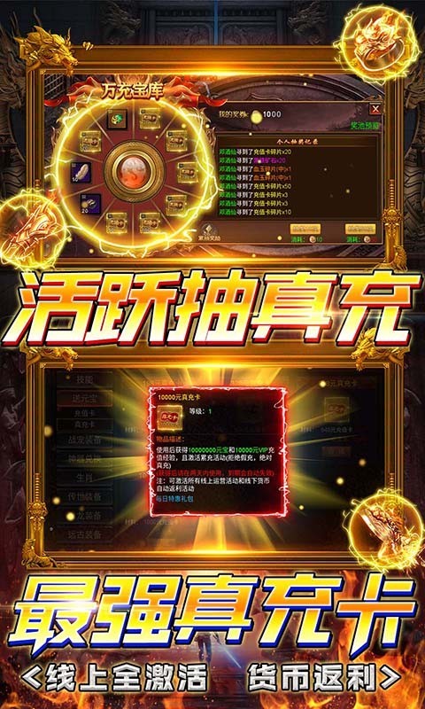 累计充卡活动,很多抽卡环节非常多样,线上线下的资源活动非常多。非常好玩的传奇竞技游戏。