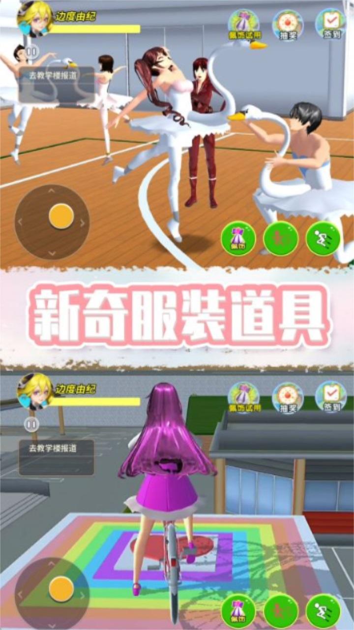 这是一款在某个小镇子里,与居民和当地高中的学生们一起生活学习的模拟游戏。快来与居民们愉快的互动吧当然,你也可以换上华丽的服装去挑战各种跑酷,在一次次的挑战中展现你帅气美丽的一面吧!专属游戏剧情,合理开启各种关卡比拼,完成不同的关卡任务。丰富的游戏关卡设置,玩家都可以选择多样化的服装类型。游戏的操作过程乐趣十足,而且还有专属的发型设计。