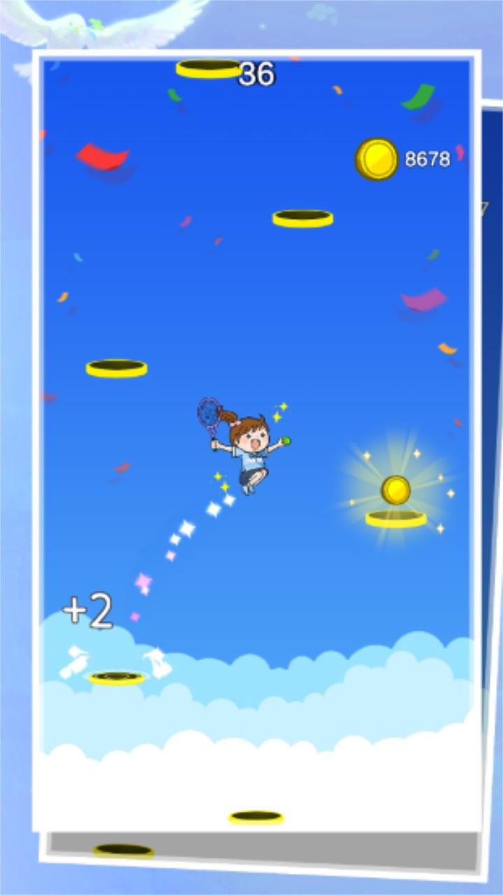 这是一款清新,画质简洁的休闲游戏,主要考验玩家的敏捷和反应速度,玩法简单又让人上瘾玩不停,零碎的时间也有巨大的乐趣,看看你能跳多高吧,还在等什么?快来挑战吧!控制女孩通过手指灵活移动,根据台阶一层一层往上跳,落在台阶即可得分