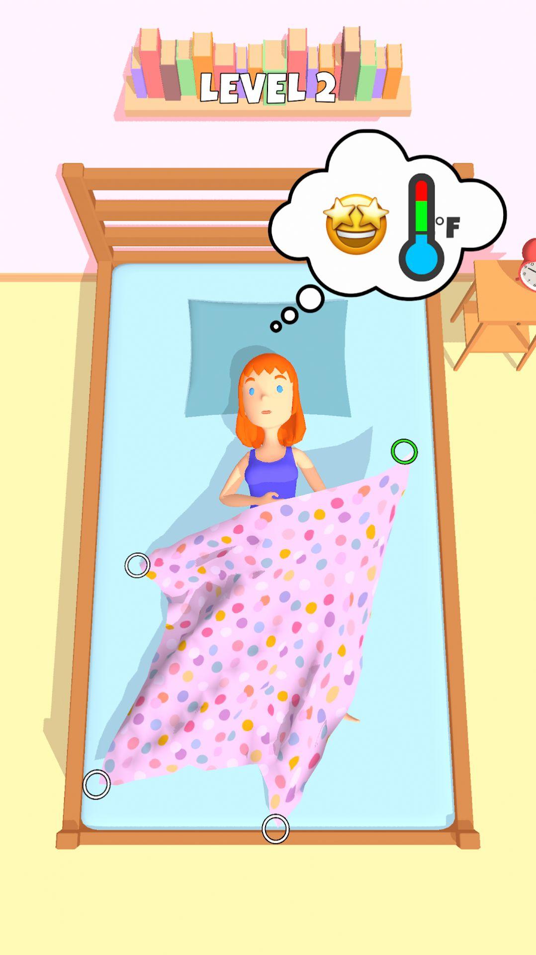 1、卡通画风世界,随时点击开始游戏,完成盖被任务,很精彩有趣;