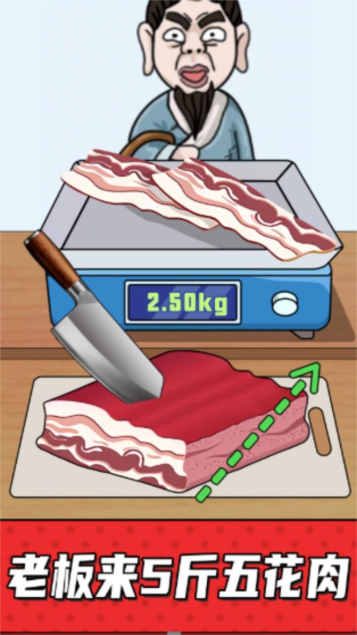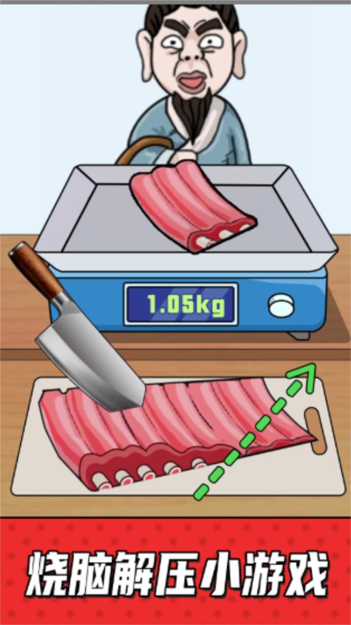 是一款益智解谜游戏,游戏中你可以体验卖肉铺老板的生活,还要满足客户的各种重量要求,看你能不能一刀切出正确的重量了!老板来5斤五花肉,烧脑解压小游戏,不要缺斤少两哦,算数称量我超强,顾客夸我小当家。