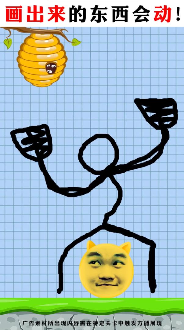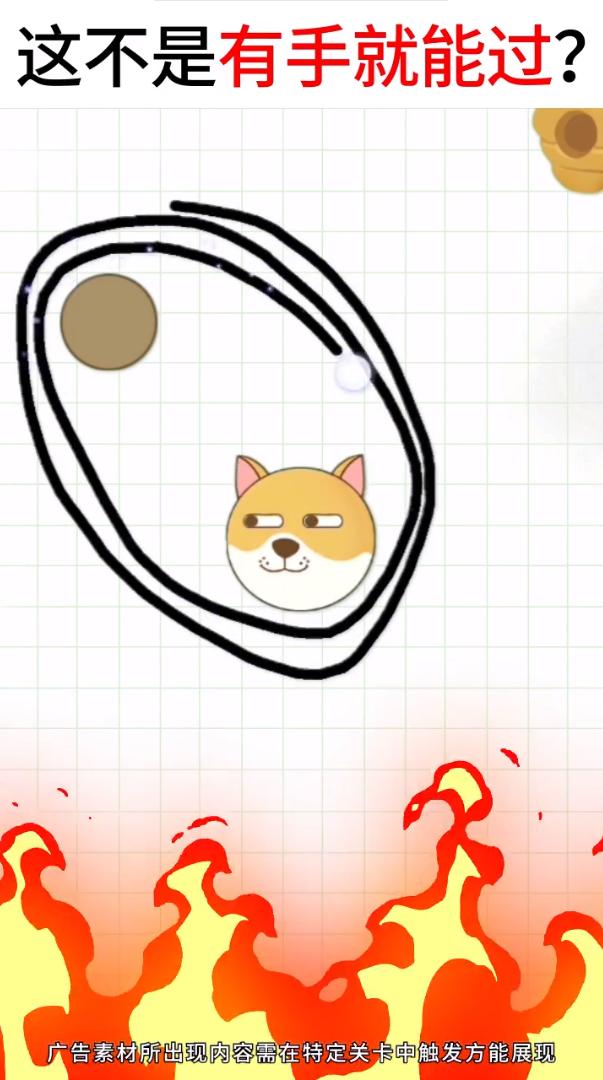 2、没有任何画线限制,尽情发挥你的想象力,快速找到最简单的方法,成功拯救狗头。