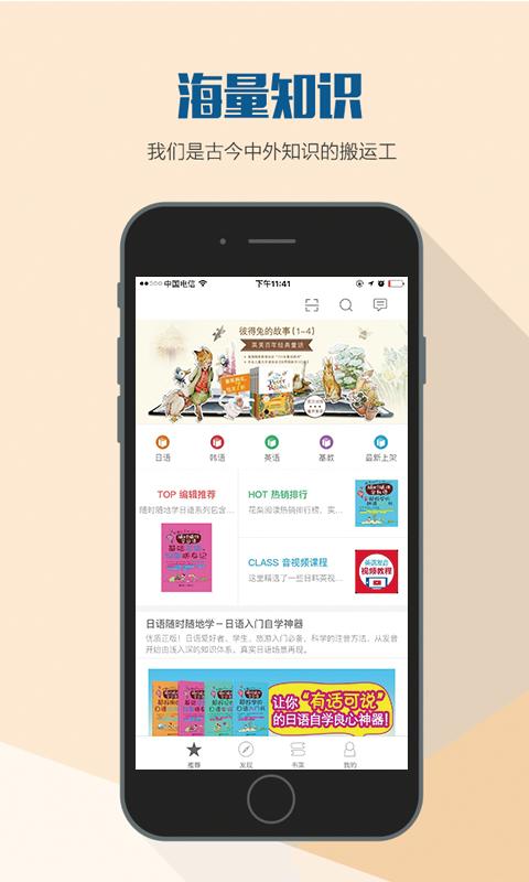 外语学习(有声点读)、音视频内容、人文社科、理工电子书、海量知识