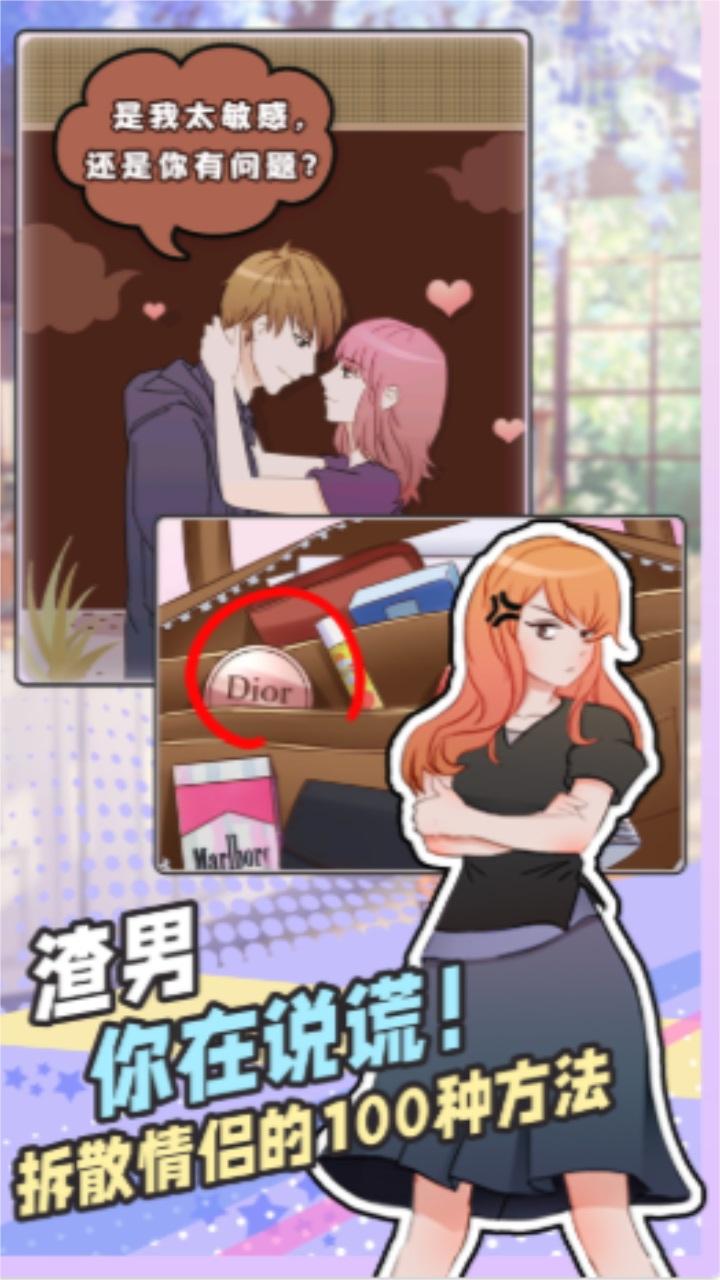 拆散情侣大脑洞是由深圳滕逸科技有限公司推出的一款情侣侦探识破渣男的手游,拆散情侣的一百种方法,一个个的都实验一次,各种衣服和聊天记录的巧合,还要最新的的三人一台戏的场面,都是十分抓马的,找线索,拆散他们,远离渣男。