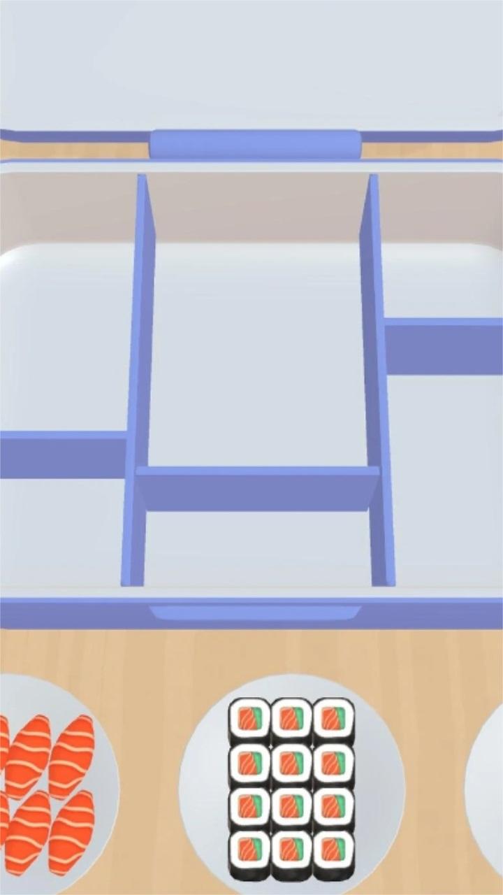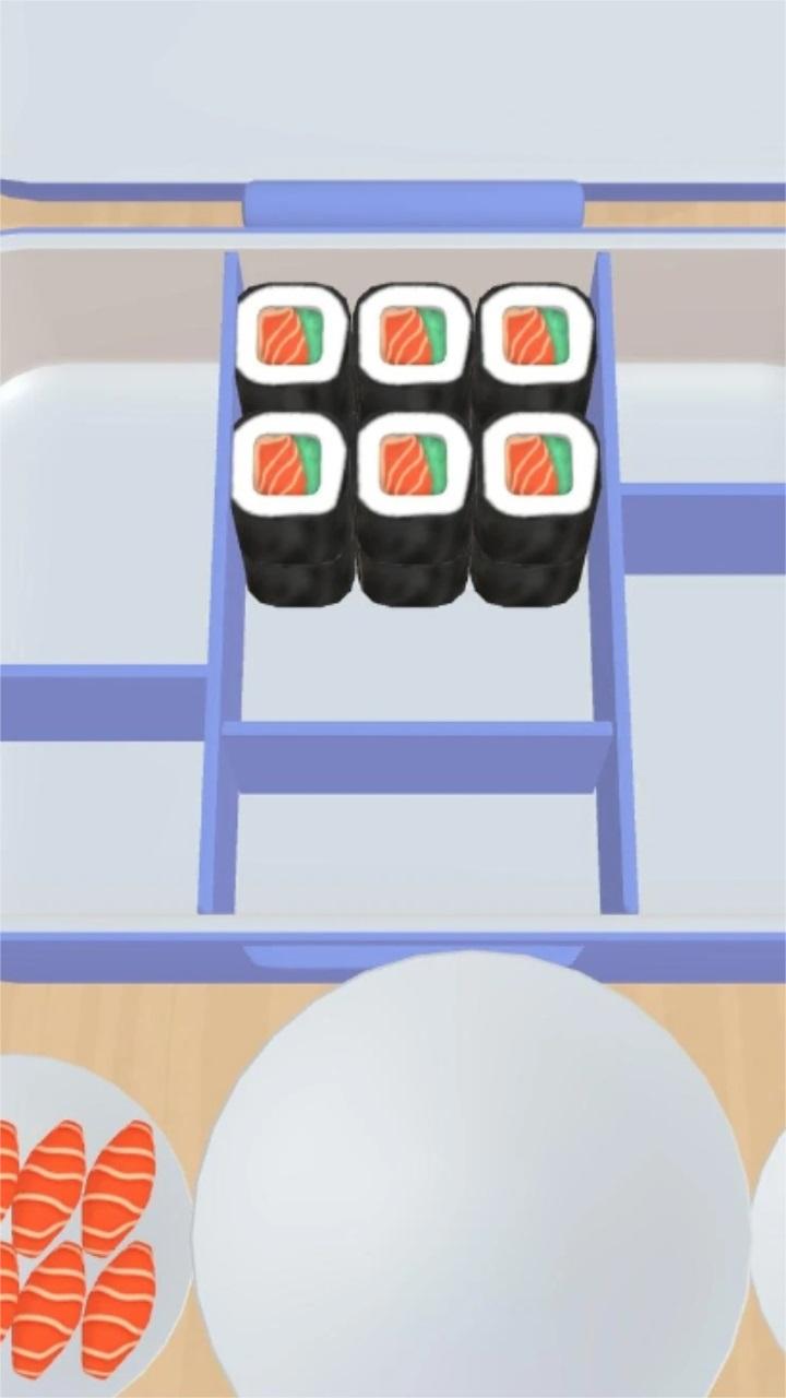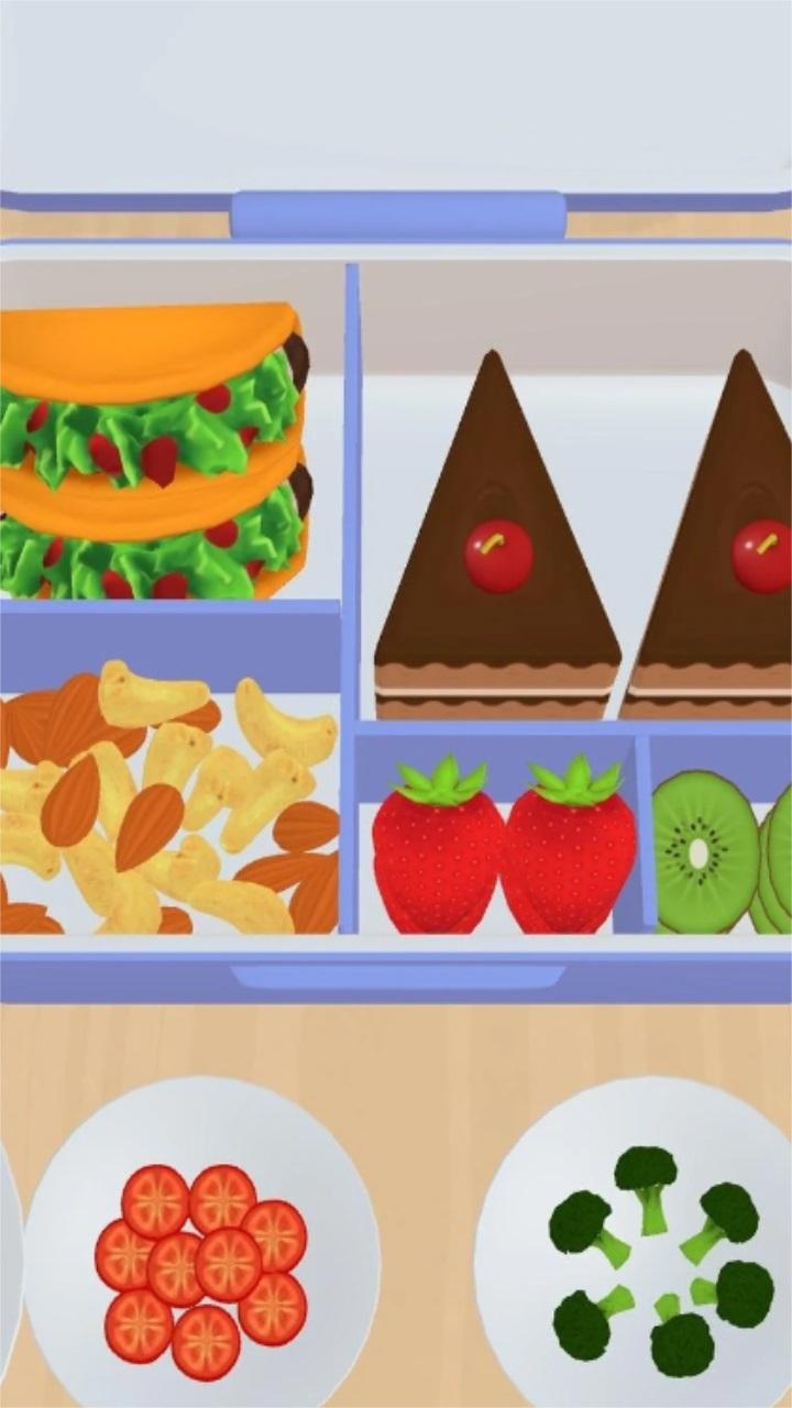 4、午餐盒准备是一个ASMR游戏,你把食物放在盒子里,你会有一种满意的感觉,而把食物项目的顺序。制作出精致的便当摆盘。