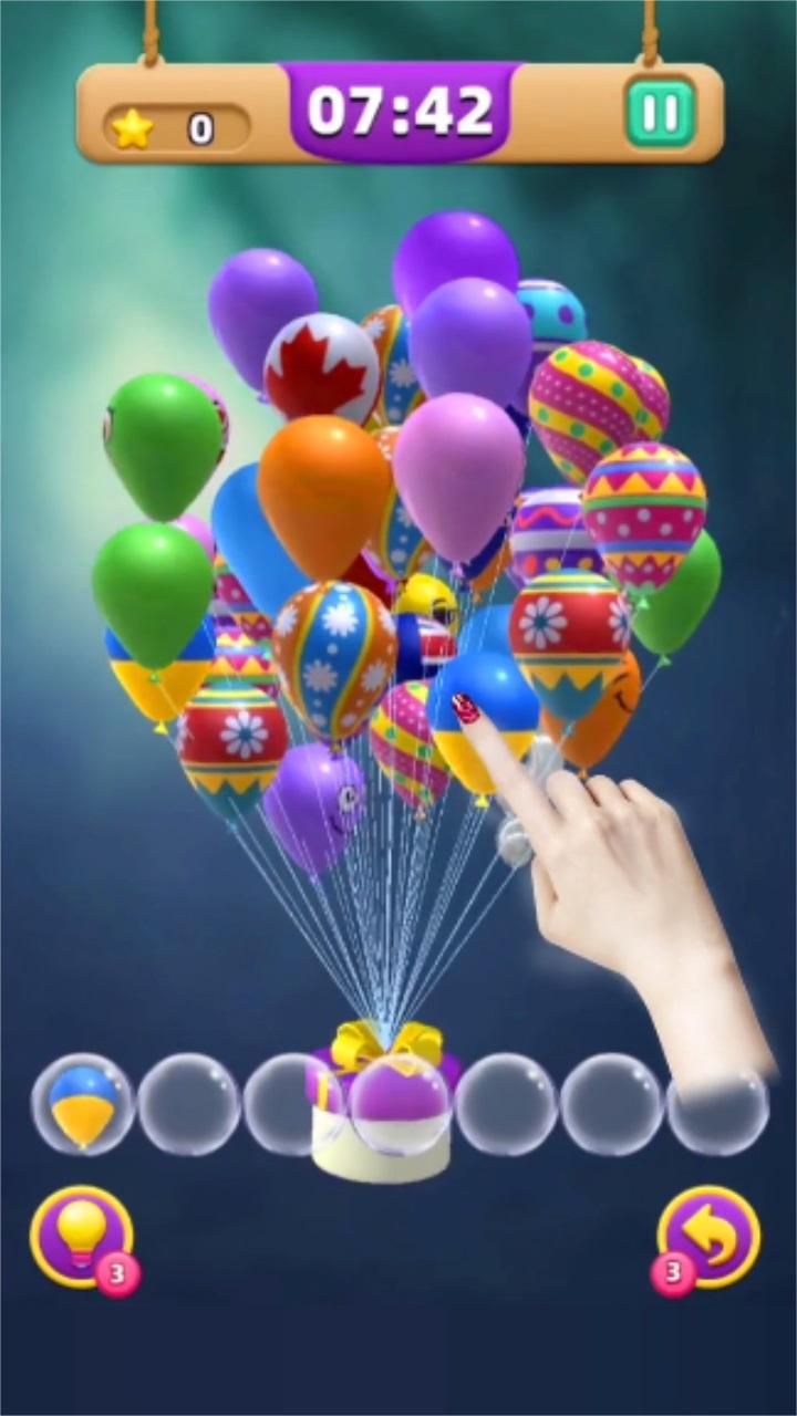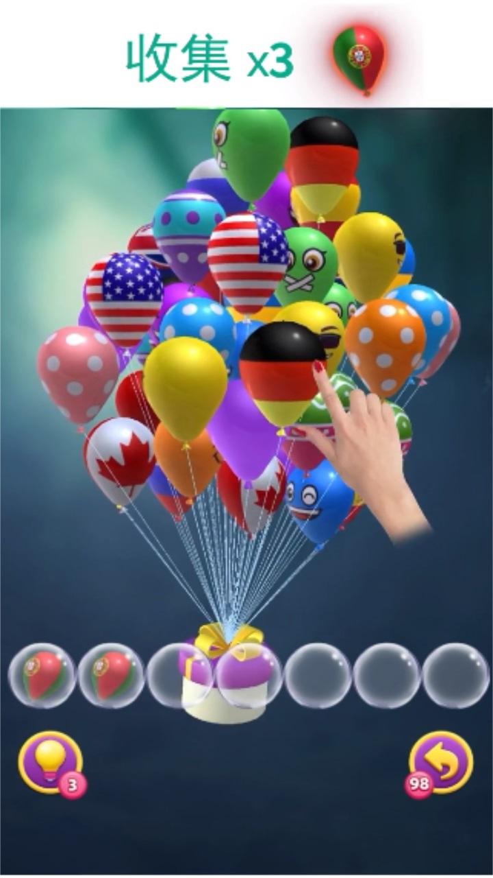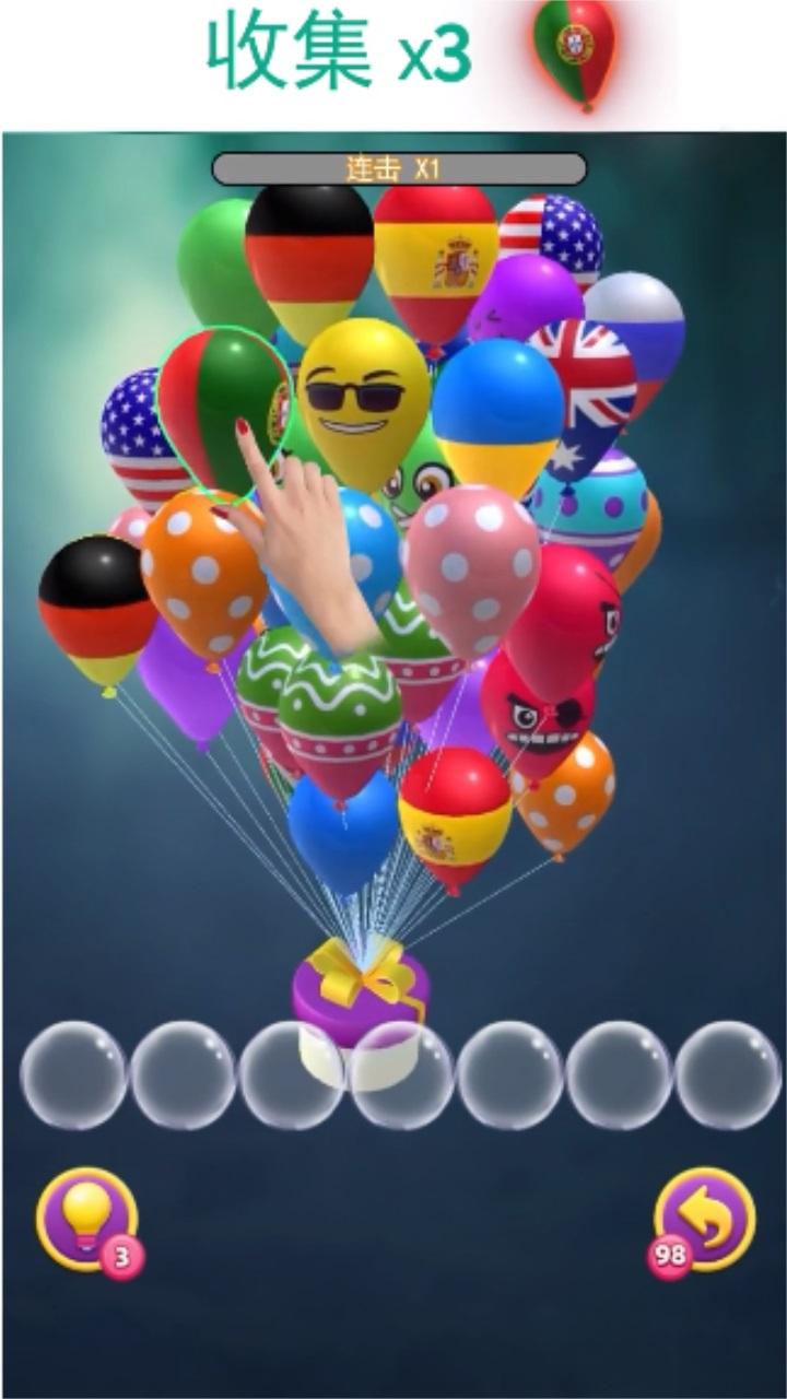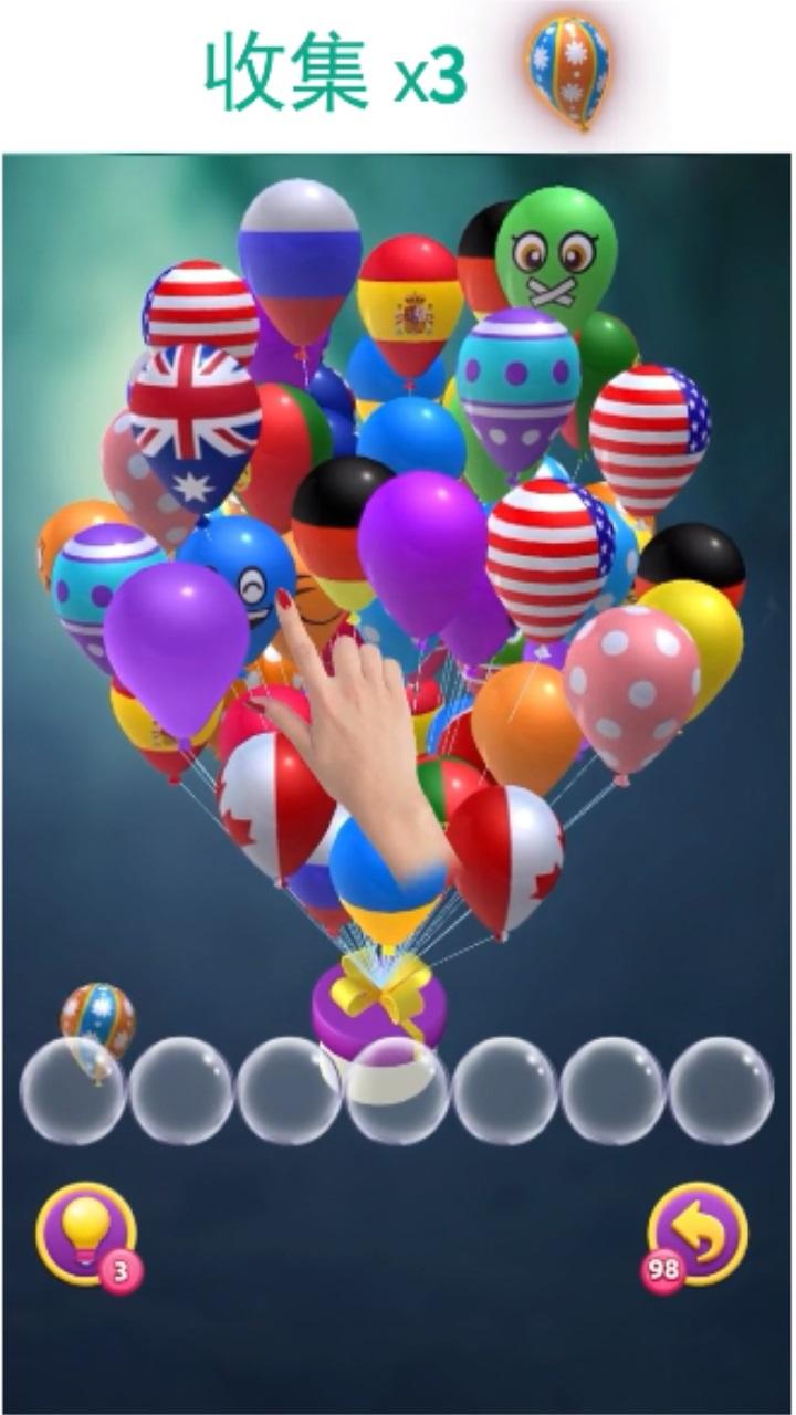 简单的游戏操作,跟前作也半斤八两,只需点击屏幕中两个或者两个以上相同颜色相同类型的气球,便可轻松达到消除的效果,当然尽可能一次性消除气球的数量越多,分数就越高,每个关卡都有一定的任务要求,达到任务要求还会出现特殊技能,闪闪发光的帮助大家消除剩余气球,完美过关。