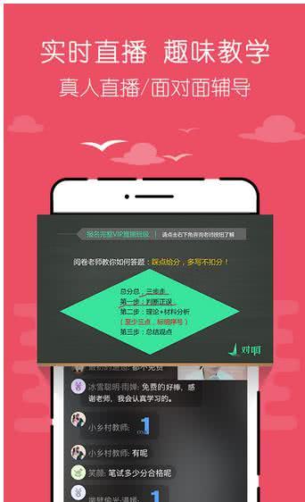 在线免费直播,必考知识点,考试须知,历年真题讲解,手机听课兼刷题,互动教学,个性化辅导,对啊名师带你速效提分!