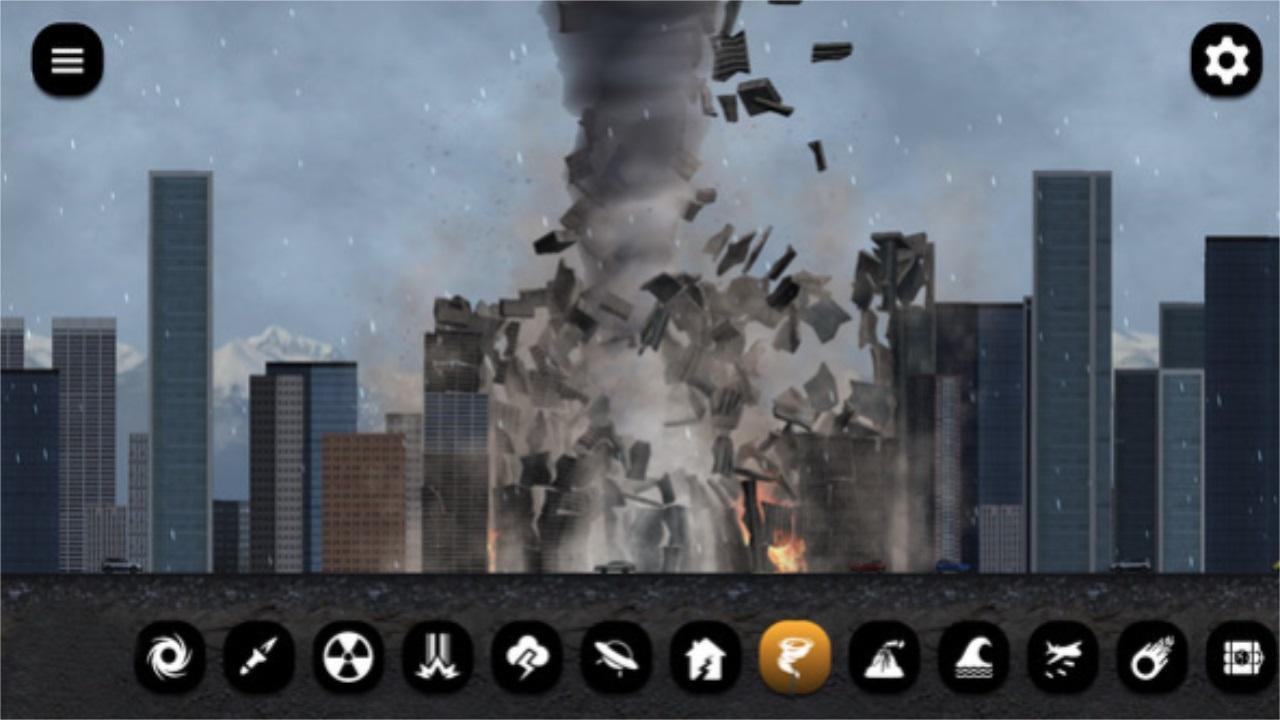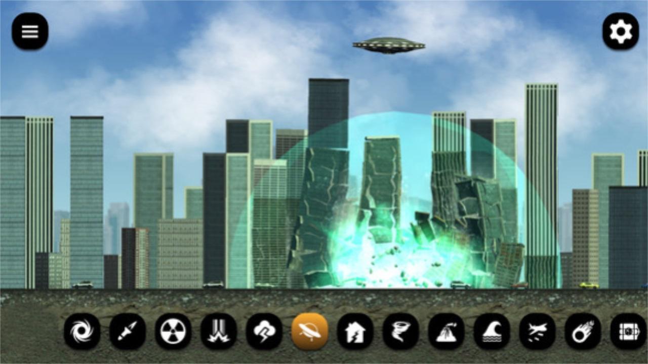 这个游戏是一个物理游乐场,在那里你可以用核弹、导弹、黑洞、激光束或闪电摧毁一座城市。 这些建筑被设计成以一种现实的方式分解,这样你就可以看到这些武器造成的破坏。面对不同的建筑时,玩家也能采取不同的武器来分解掉它们,给玩家带来最新的视觉盛宴。